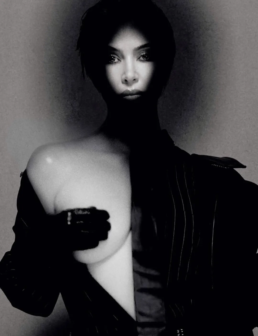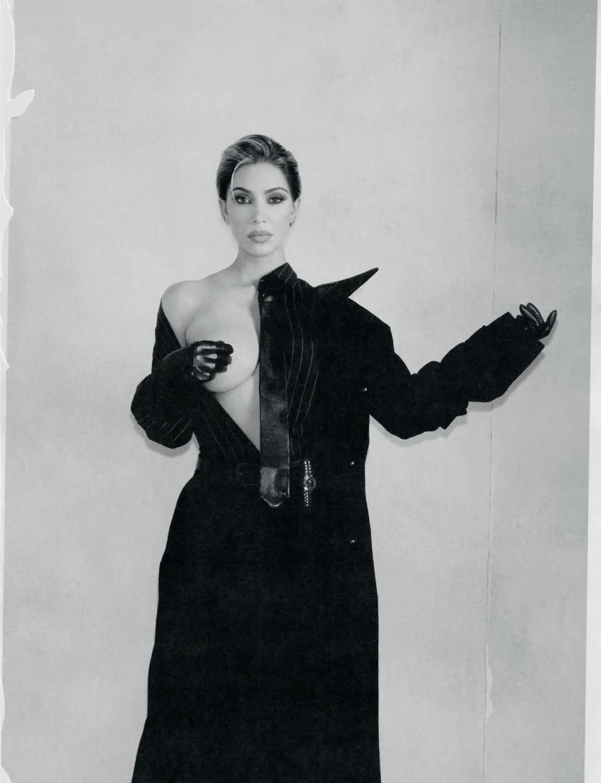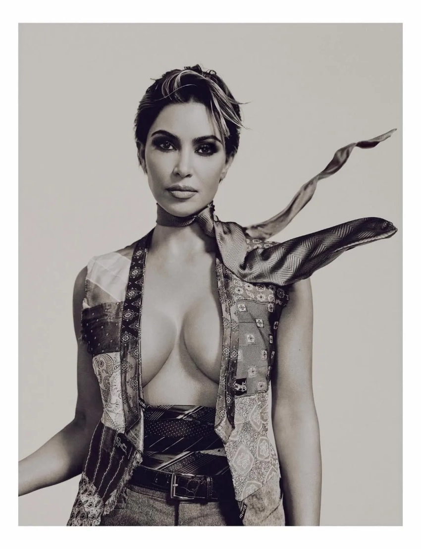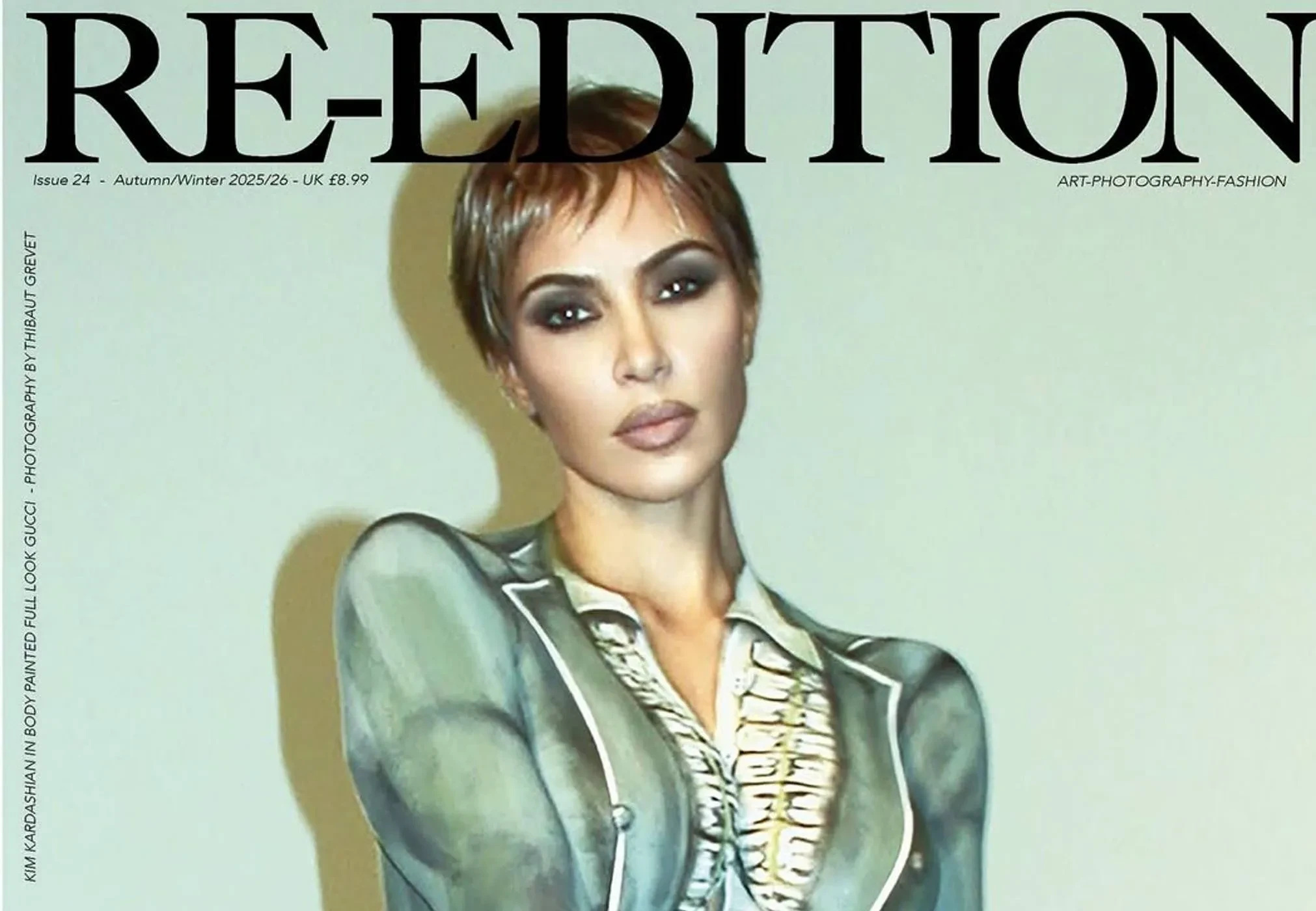 45-летняя Ким Кардашьян снялась в фотосессии для нового номера журнала Re-Edition. На обложке и некоторых снимках она предстала практически обнажённой: точнее, некоторые элементы одежды заменял реалистичный бодиарт.
