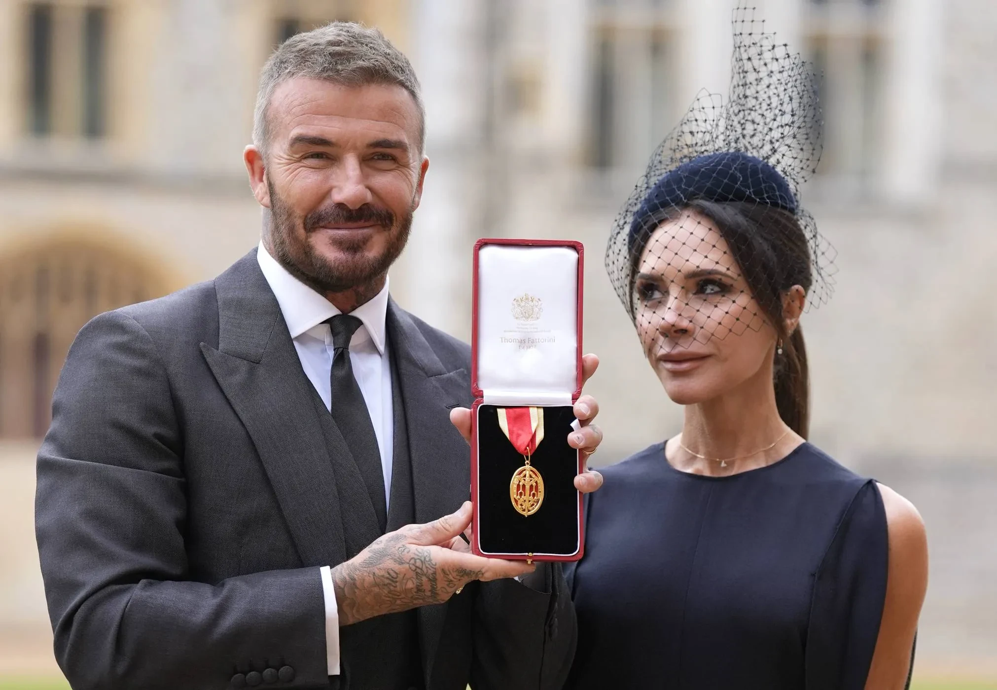 Дэвид в столь важный день нарядился в костюм бренда его жены Victoria Beckham, сшитый специально по случаю. Сама Виктория (к которой теперь нужно обращаться “леди” и которая, конечно же, пришла поздравить супруга), тоже была в кастомном платье своего бренда. Кроме того, мероприятие посетили родители легенды английского футбола: Тед и Сандра Бекхэм.