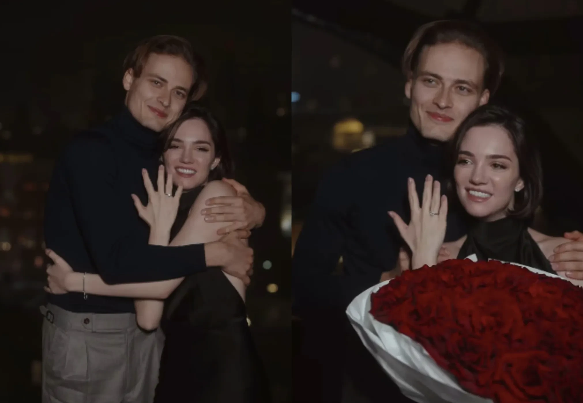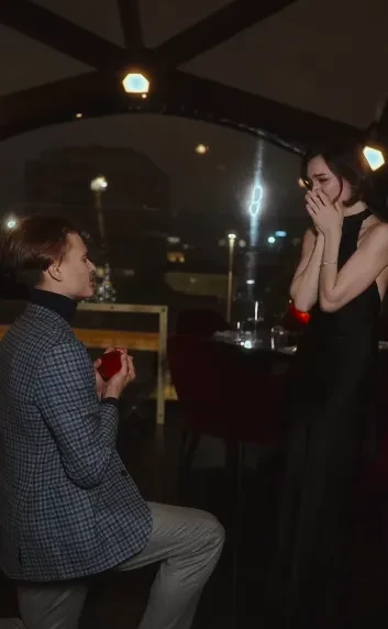 https://t.me/spletnik2006/43590В ролике показаны главные моменты помолвки: Ильдар на одном колене с кольцом в руках, кольцо крупным планом, удивлённая невеста в вечернем платье, которая со слезами на глазах признаётся, что и не подозревала, что ей сделают предложение, букет красных роз, поцелуи влюблённых и прочие детали, присущие инстаграм*-помолвкам. Всё происходило на крыше одного из высотных зданий с видом на вечернюю Москву.