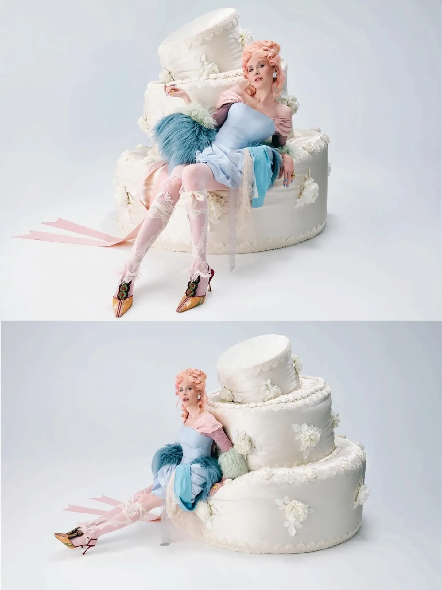 На фото Давыдова позирует на фоне большого декоративного торта. На ней голубое винтажное платье, полупрозрачные кружевные чулки и туфли на каблуке. Образ дополняют массивные украшения и узнаваемая высокая причёска с розовыми локонами. "С днём рождения меня", — подписала публикацию Наталья.