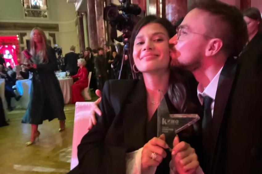 На дорожке 24-летняя Виктория позировала в белом мини-платье и чёрном жакете, а Александр надел классический костюм с галстуком. Во время церемонии Петров получил награду в номинации "Актёр года" и выступил с речью, поблагодарив организаторов.