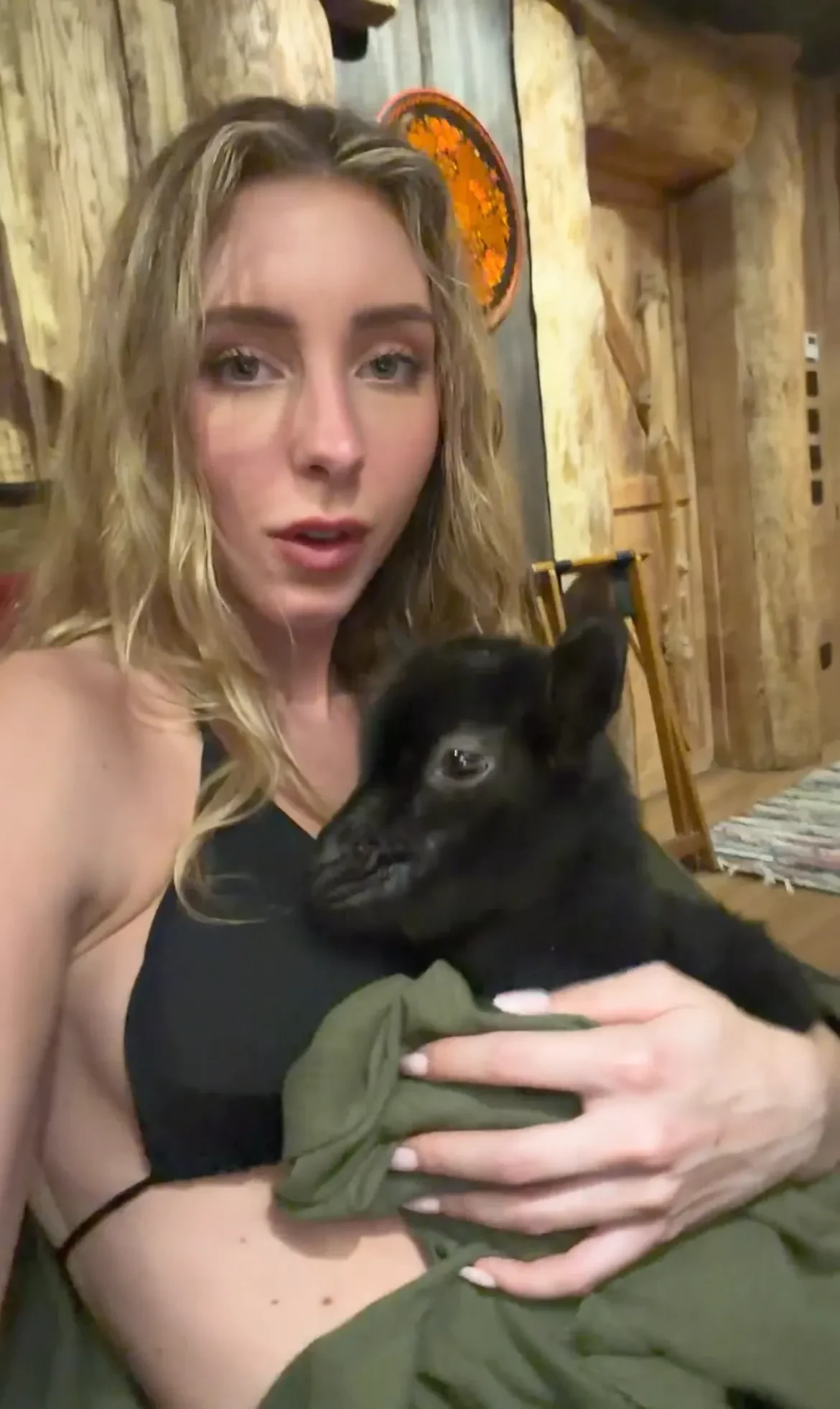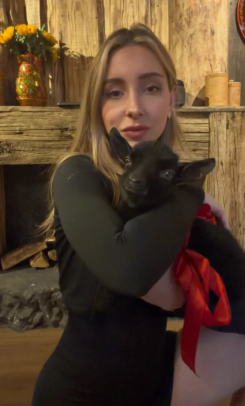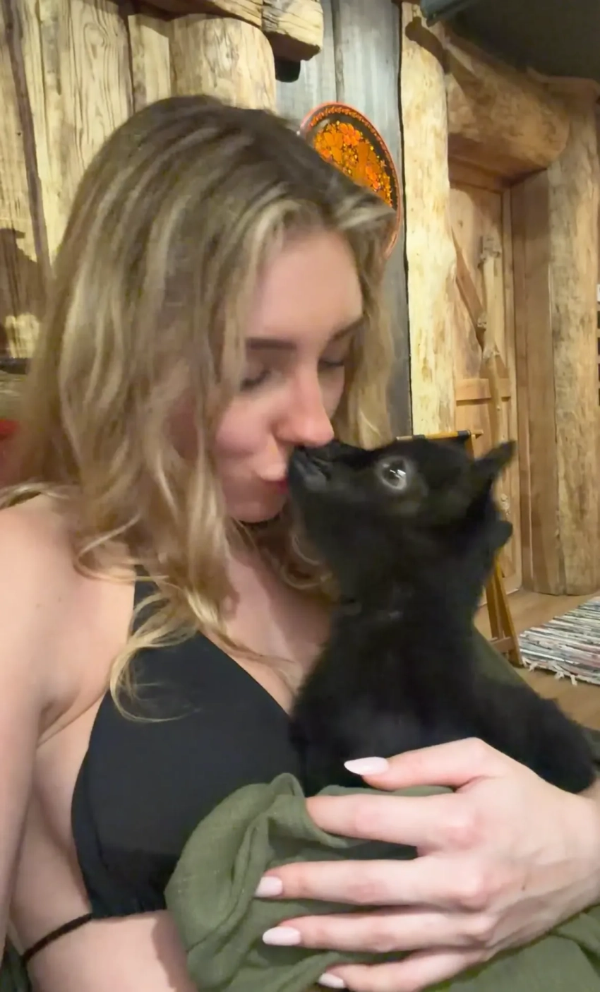 Вавилова опубликовала видео с чёрным трёхмесячным козлёнком и рассказала, что теперь он будет жить с ними. "У нас появился новый питомец! И это не собака, не кошка. Даже не хомячок. Это мини-козлёнок. Его зовут Тонски, ему три месяца".