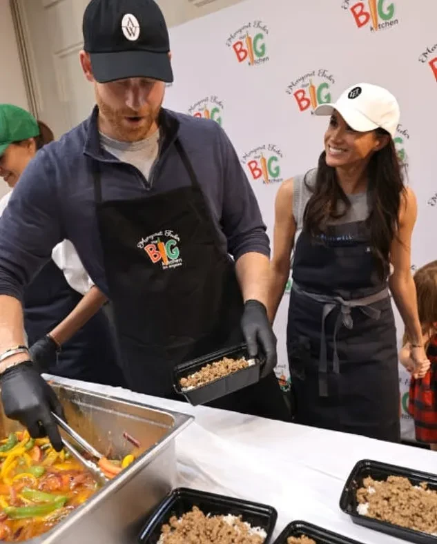 44-летняя Маркл и 41-летний Гарри посетили общественную кухню Our Big Kitchen в Лос-Анджелесе, которая занимается раздачей еды нуждающимся.
