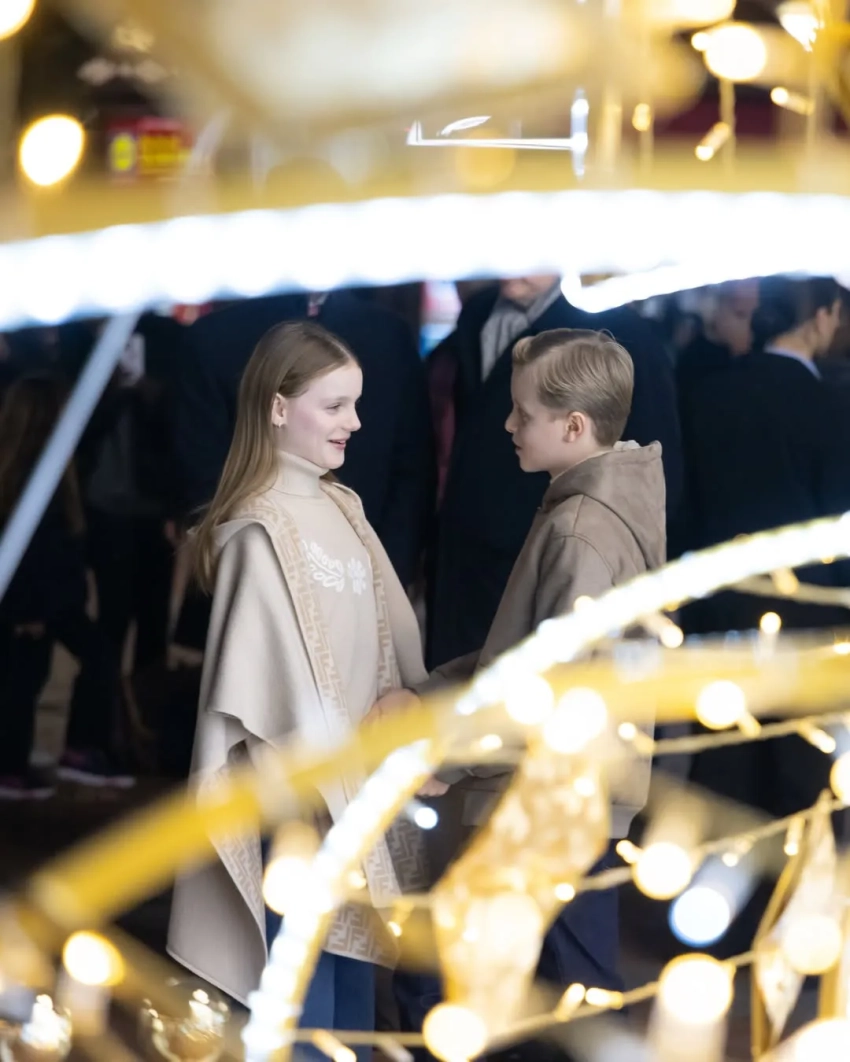 47-летняя Шарлен появилась на мероприятии в пальто в гусиную лапку, дополнив образ кожаной обувью и перчаткам. 10-летняя принцесса Габриэлла позировала в накидке Fendi, а её брат-близнец, наследный принц Жак — в толстовке Armani. Дети нажали на кнопку, включив иллюминацию по всему княжеству, что означает официальное начало праздничного сезона в Монако и сопутствующих ему мероприятий.