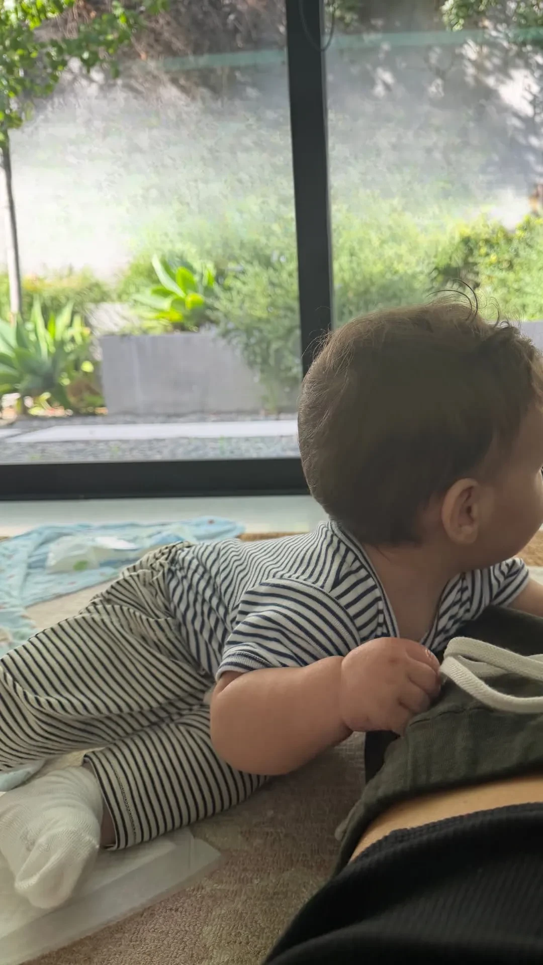 Судя по фото, Марк, которому сейчас по меньшей мере шесть месяцев, уже активно познаёт мир: на снимке он сидит рядом с Надеждой и внимательно рассматривает окружающую обстановку.