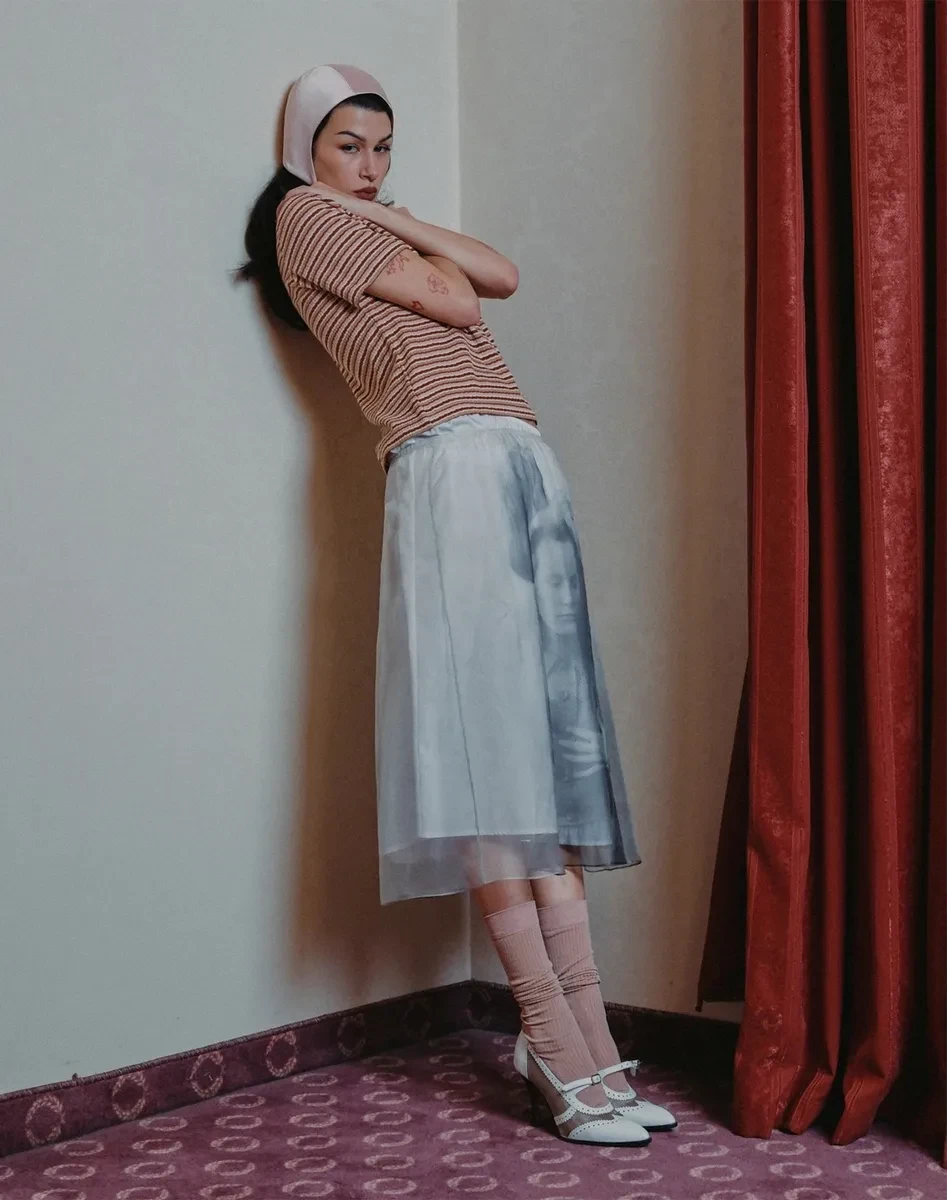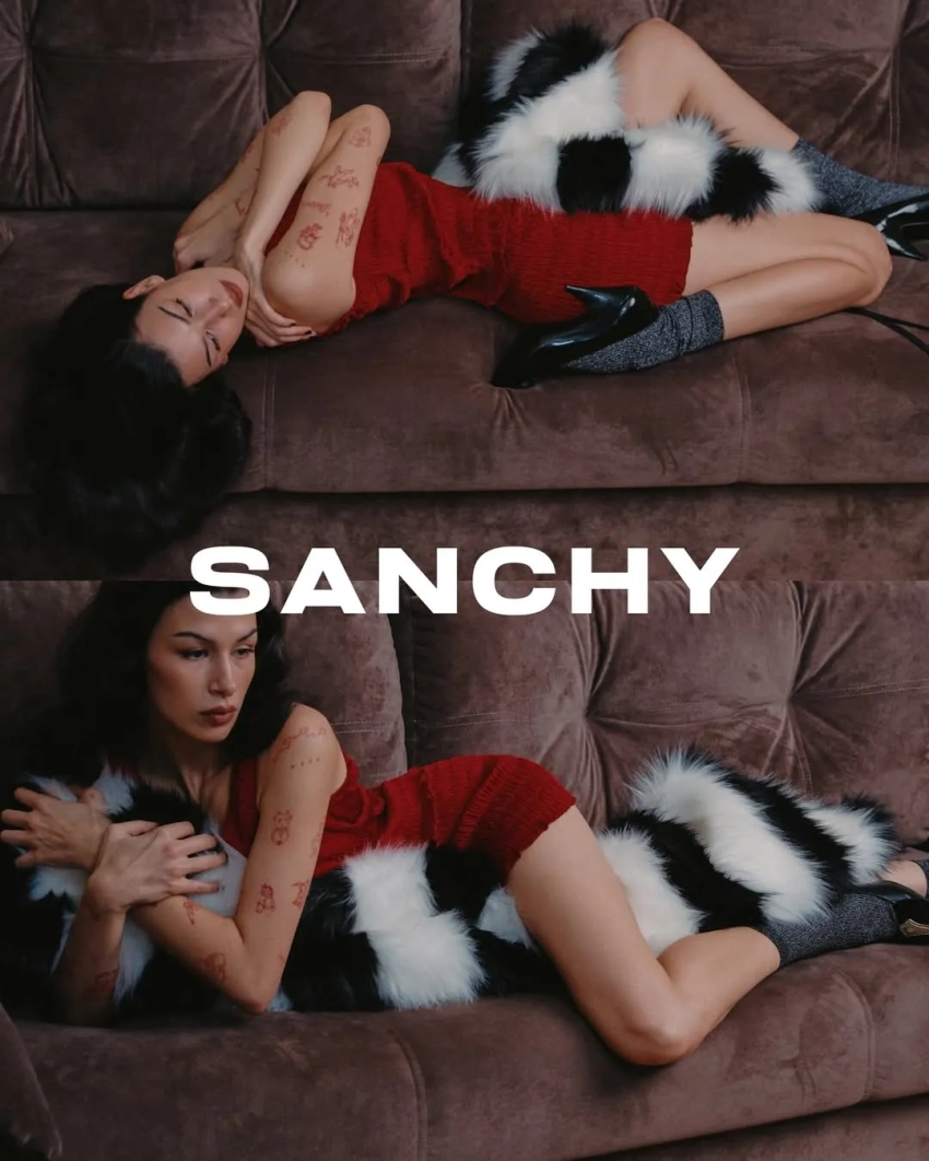 Эрика Кикнадзе примерила вещи из новой коллекции Sanchy — After Midnight. Стилизовал съёмку Ибрагим Гатциев — стилист и сооснователь российского бренда одежды Planta Rosa, для которого совсем недавно снялась Кикандзе и который Гатциев покинул этим летом из-за разногласий с коллегой Евгенией Павлин.