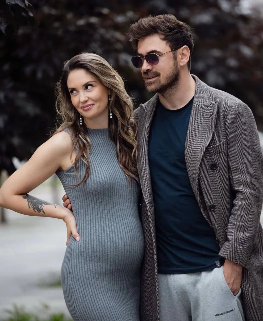 О том, что влюблённые станут родителями, заговорили в апреле. Муцениеце скрывала беременность долгое время и даже отрицала её, и лишь спустя несколько месяцев, когда скрывать изменившуюся фигуру стало уже сложно, официально подтвердила информацию.