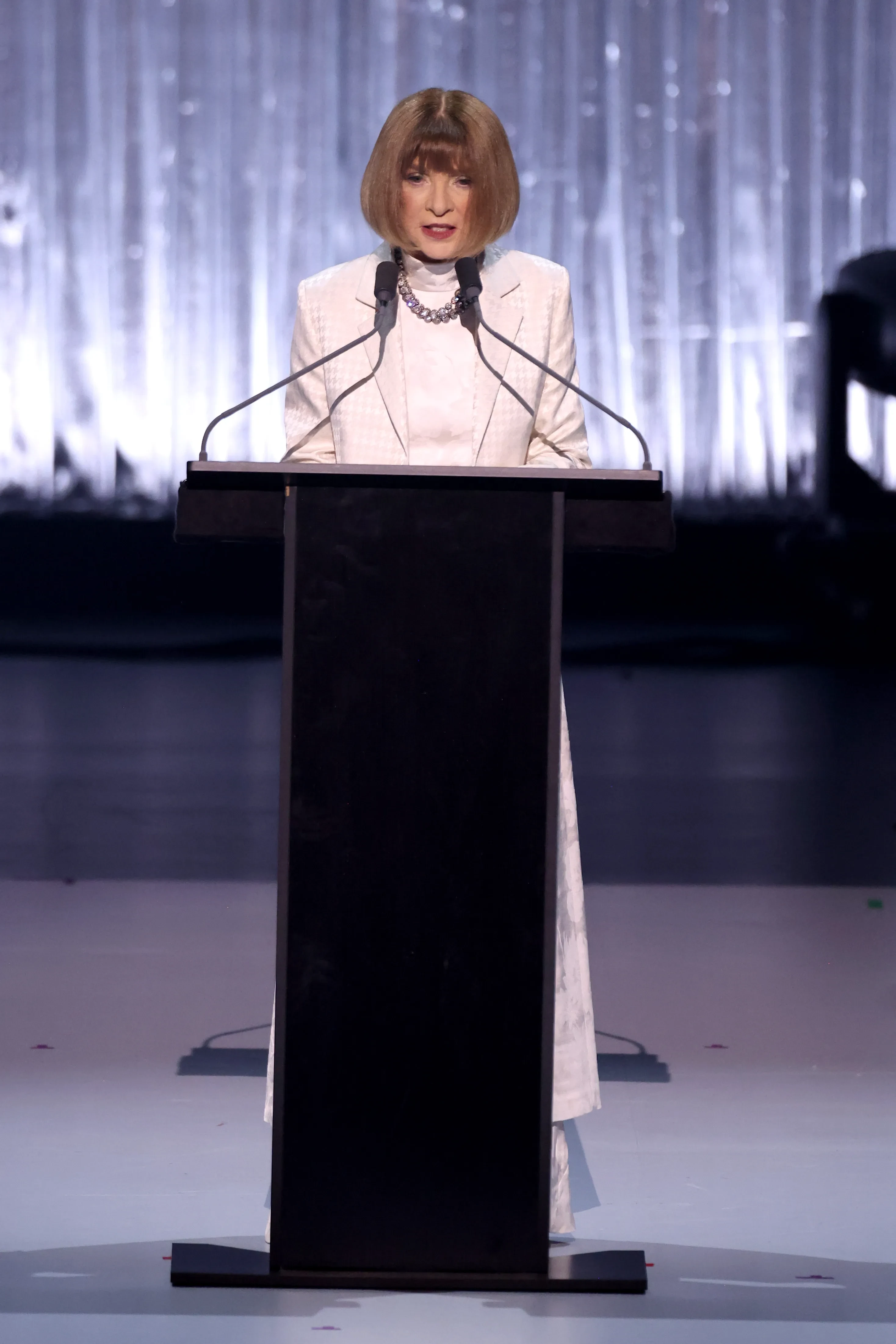 Со сцены перед собравшимися выступили экс-главред Vogue Анна Винтур и дочь Николь Кидман Сандэй Роуз, которая строит модельную карьеру.