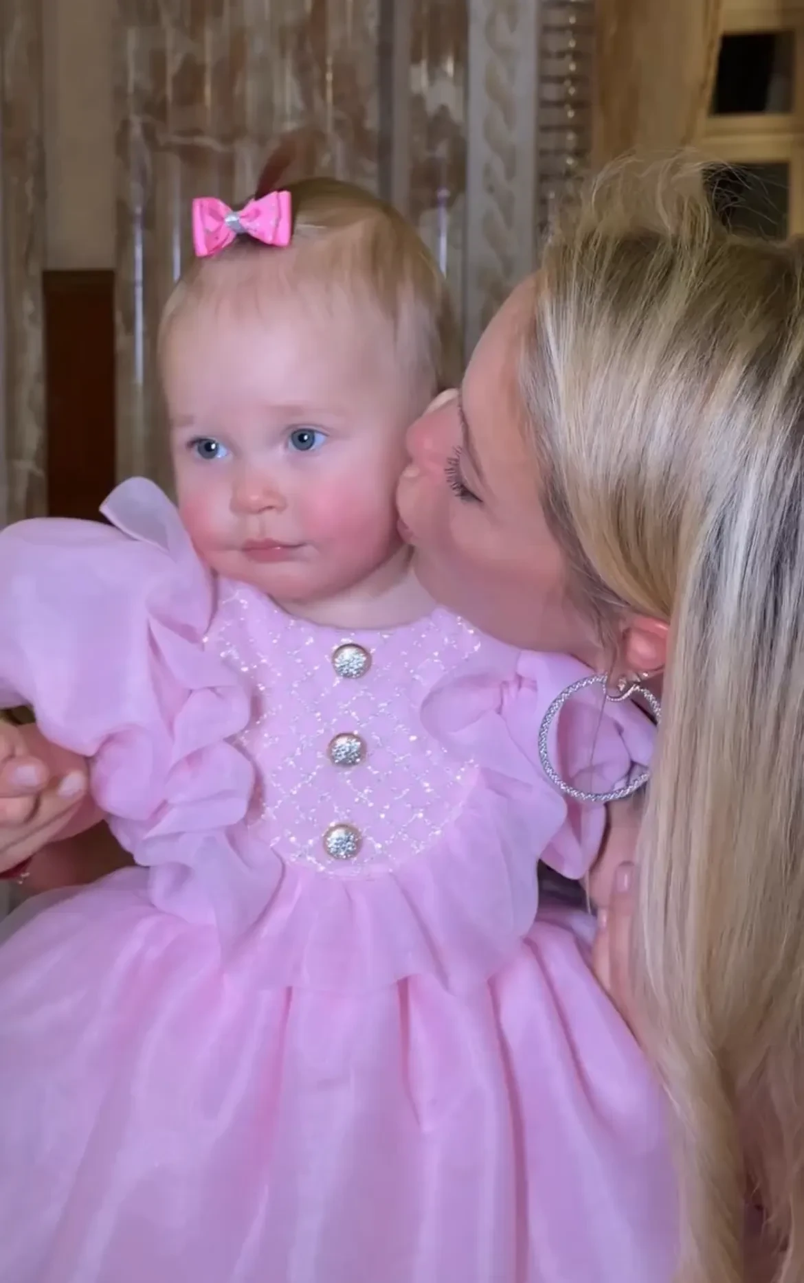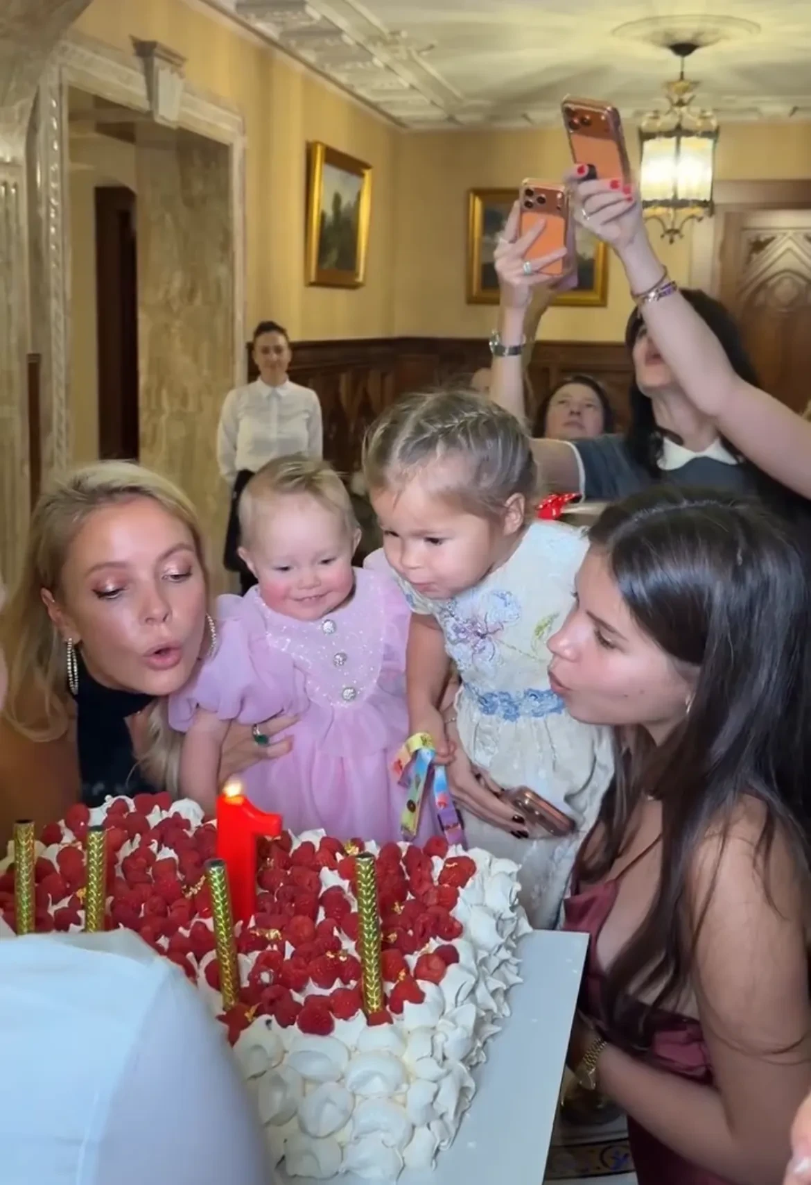 На празднике именинница была одета в розовое платье с блестящими пуговицами, а её мать Виктория позировала рядом в коричневом наряде и бриллиантовых серьгах. Нина задула свечу на праздничном торте вместе со своей 21-летней сестрой Даной и её дочерью Миллой.