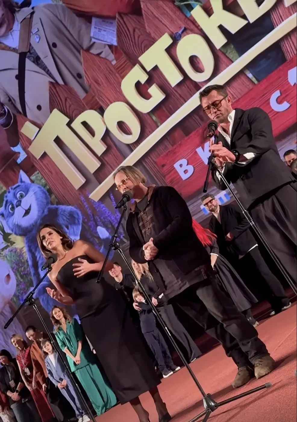 В Москве прошла премьера нового фильма режиссёра Сарика Андреасяна "Простоквашино". Мероприятие посетила Тина Канделаки, а также исполнители главных ролей Иван Охлобыстин, Павел Прилучный и жена Андреасяна Лиза Моряк с дочерьми.