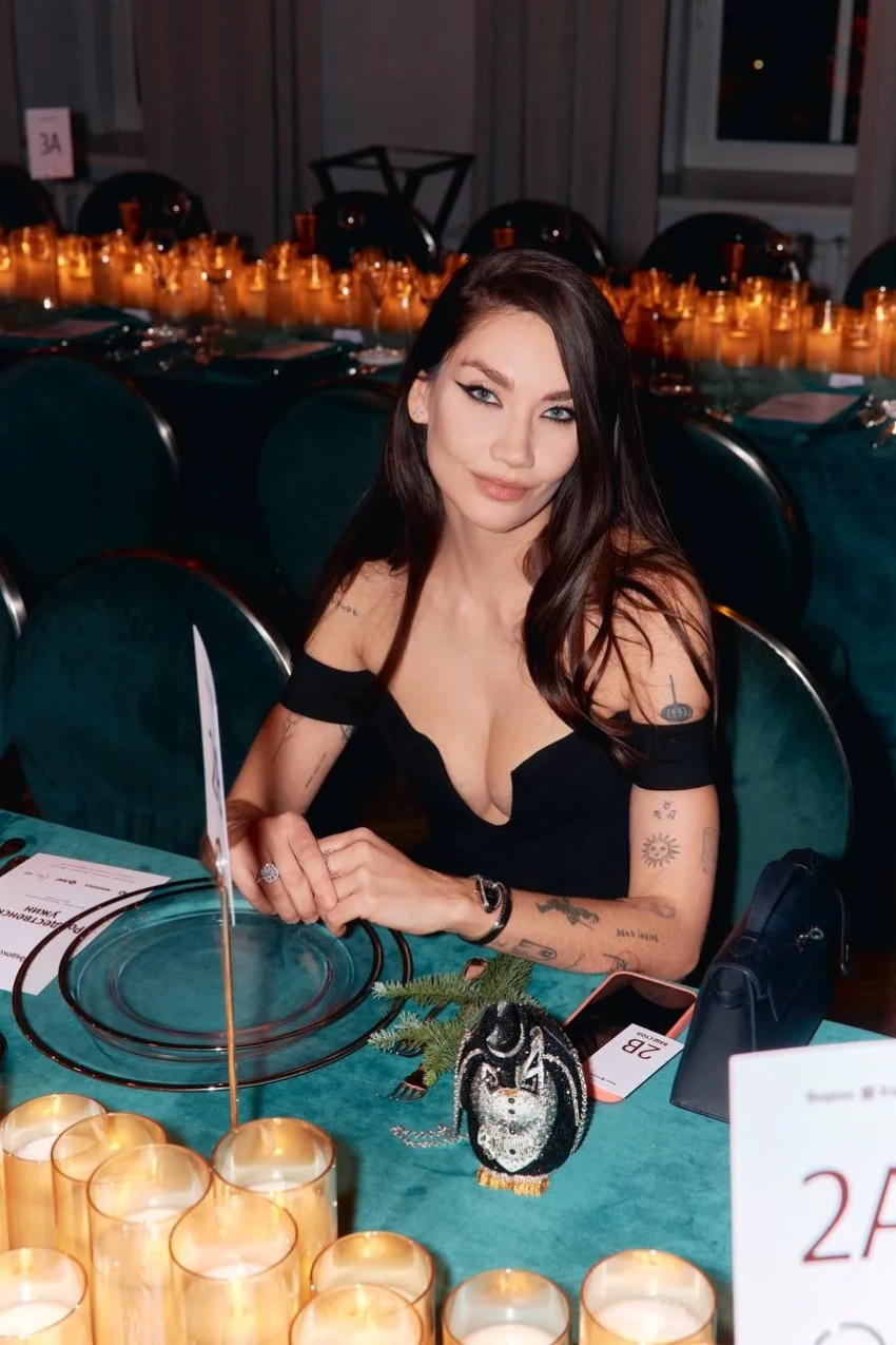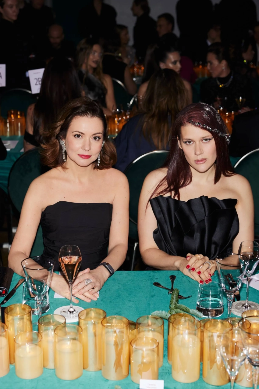 50-летняя Яна Рудковская блистала на вечере в лиловом платье Ermanno Scervino и с мини-сумкой Dior, а 27-летняя Алеся Кафельникова пришла в меховом топе от Александра Терехова. Платья бренда дизайнера Sashaverse также выбрали: жена миллиардера Зияда Манасира Виктория и Снежанна Георгиева, которая дополнила наряд белой шубой Belik.