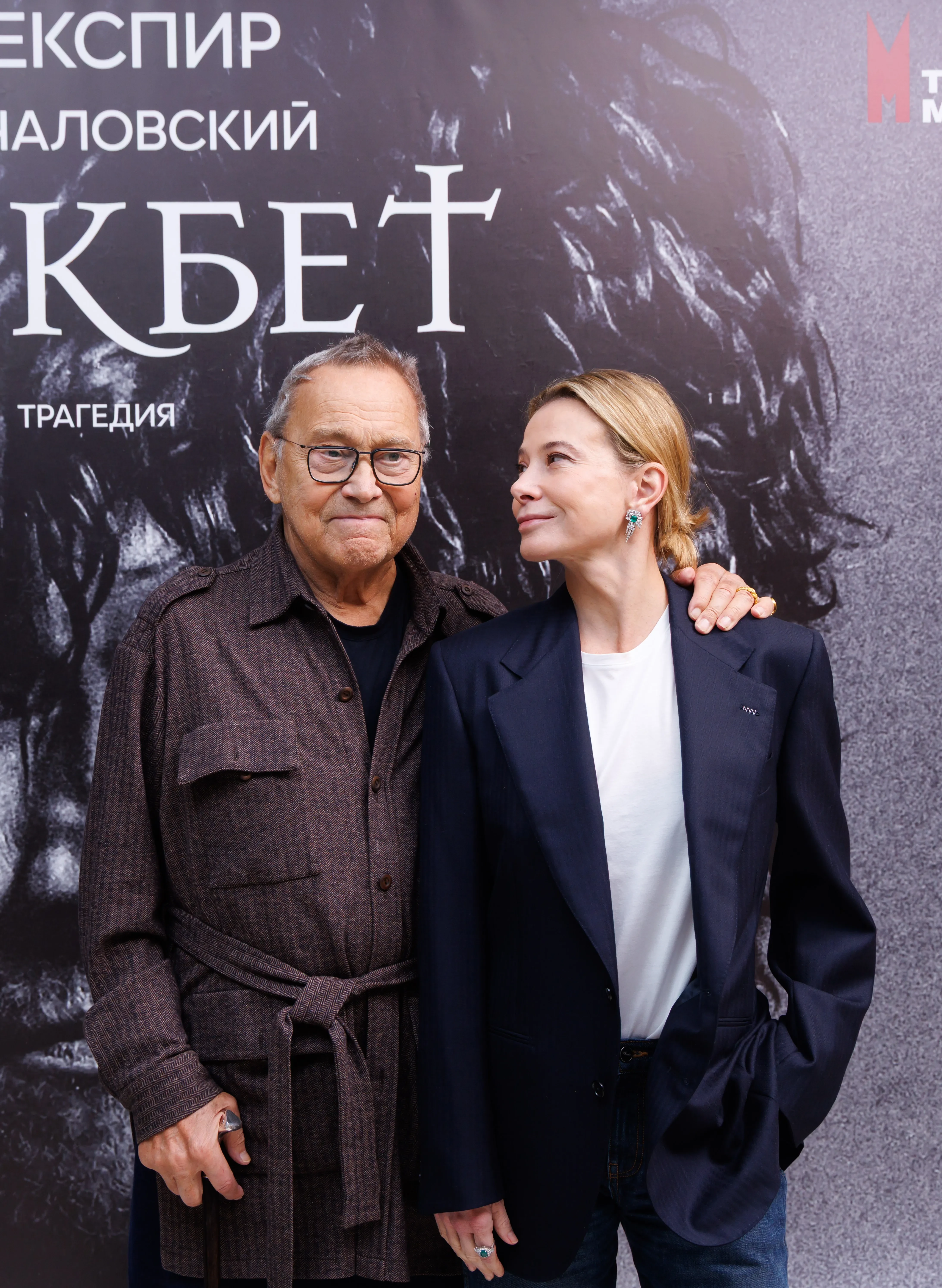 88-летний режиссёр Андрей Кончаловский вышел в свет с женой Юлией Высоцкой. Пара появилась на предпремьерном показе его спектакля "Макбет" в Театре имени Моссовета, где 52-летняя Высоцкая сыграла главную роль и который сейчас обсуждают в сети.