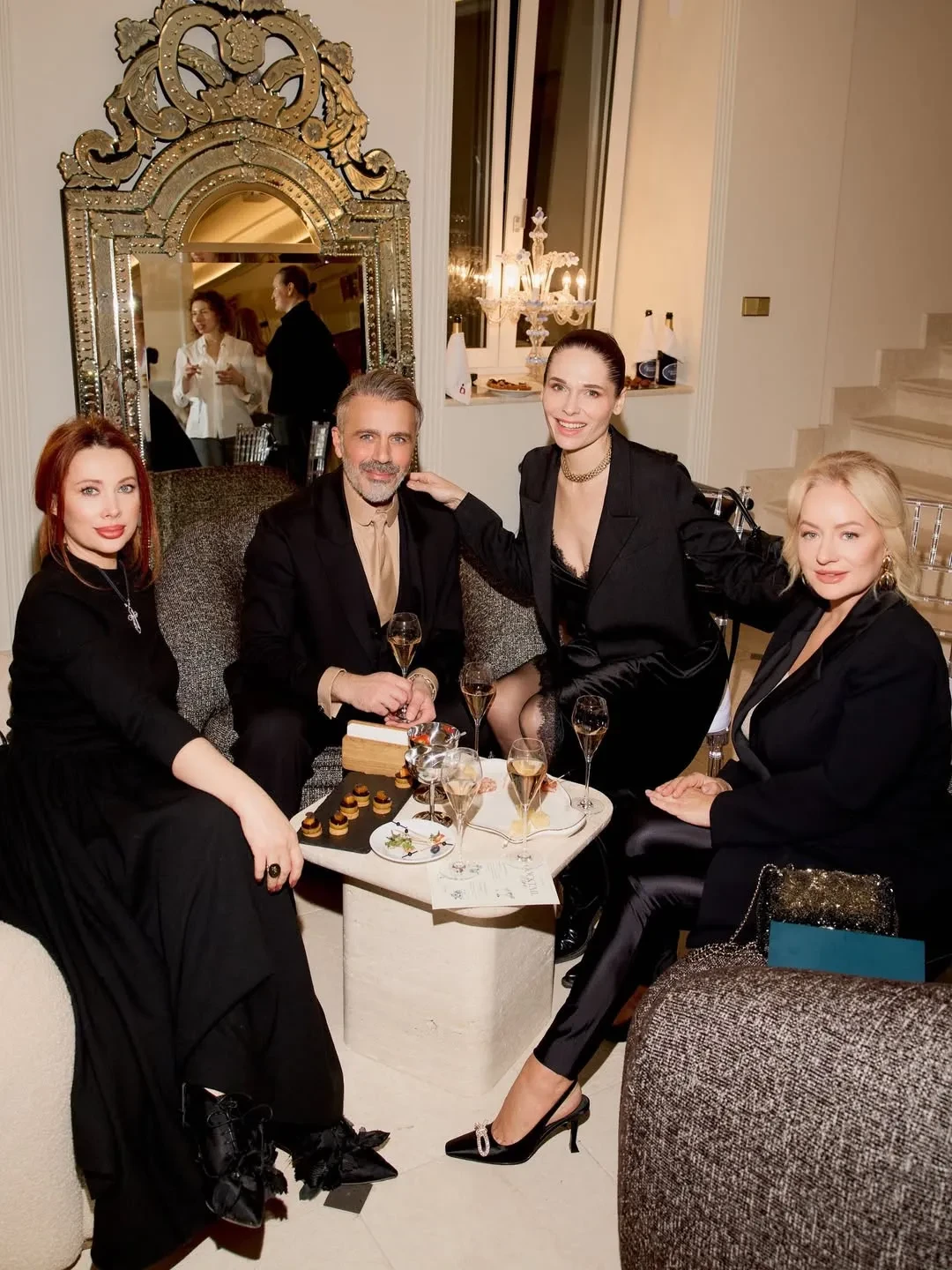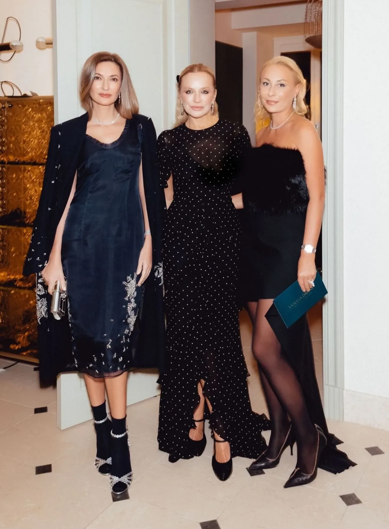 63-летняя Сати Спивакова блистала в чёрном образе и украшениях с бриллиантами, а Виктория Шелягова пришла в полупрозрачном платье в горох и белой шубе. На вечере выступил пианист Владимир Вишневский, а гостей угощали шампанским и икрой.