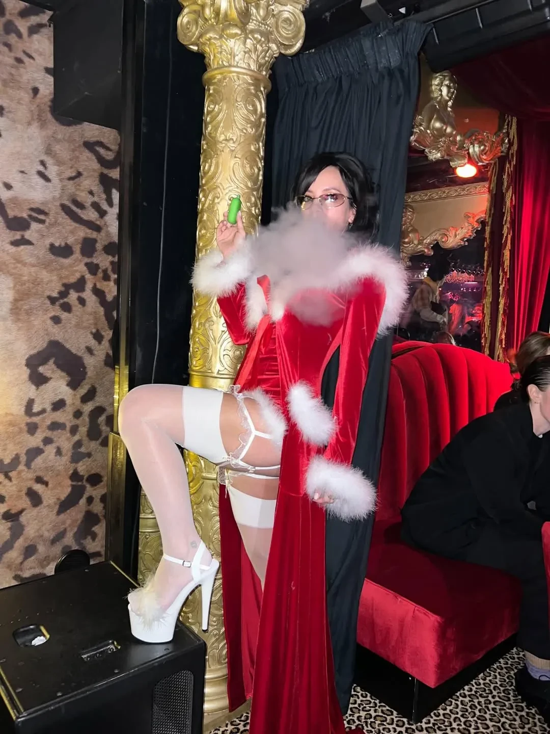 40-летнюю певицу и её нового бойфренда застали за поцелуями на рождественской вечеринке, которую Аллен устроила на выходных в стриптиз-клубе Stringfellow в Лондоне. На мероприятии поп-звезда появилась в красном наряде с мехом, белых чулках и босоножках на высоких каблуках. Они с Джоной не стеснялись проявлять чувства на публике: весь вечер обнимались, целовались и держались за руки. Фото пары опубликовали в TMZ.