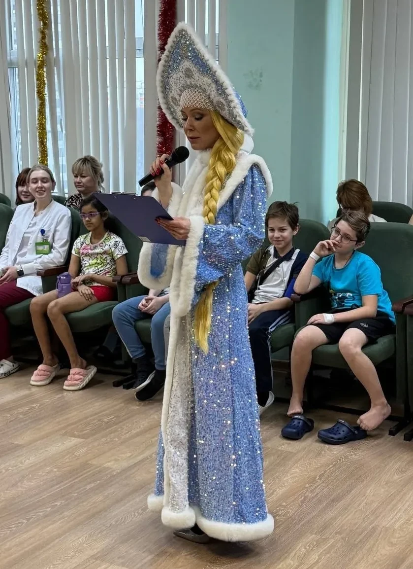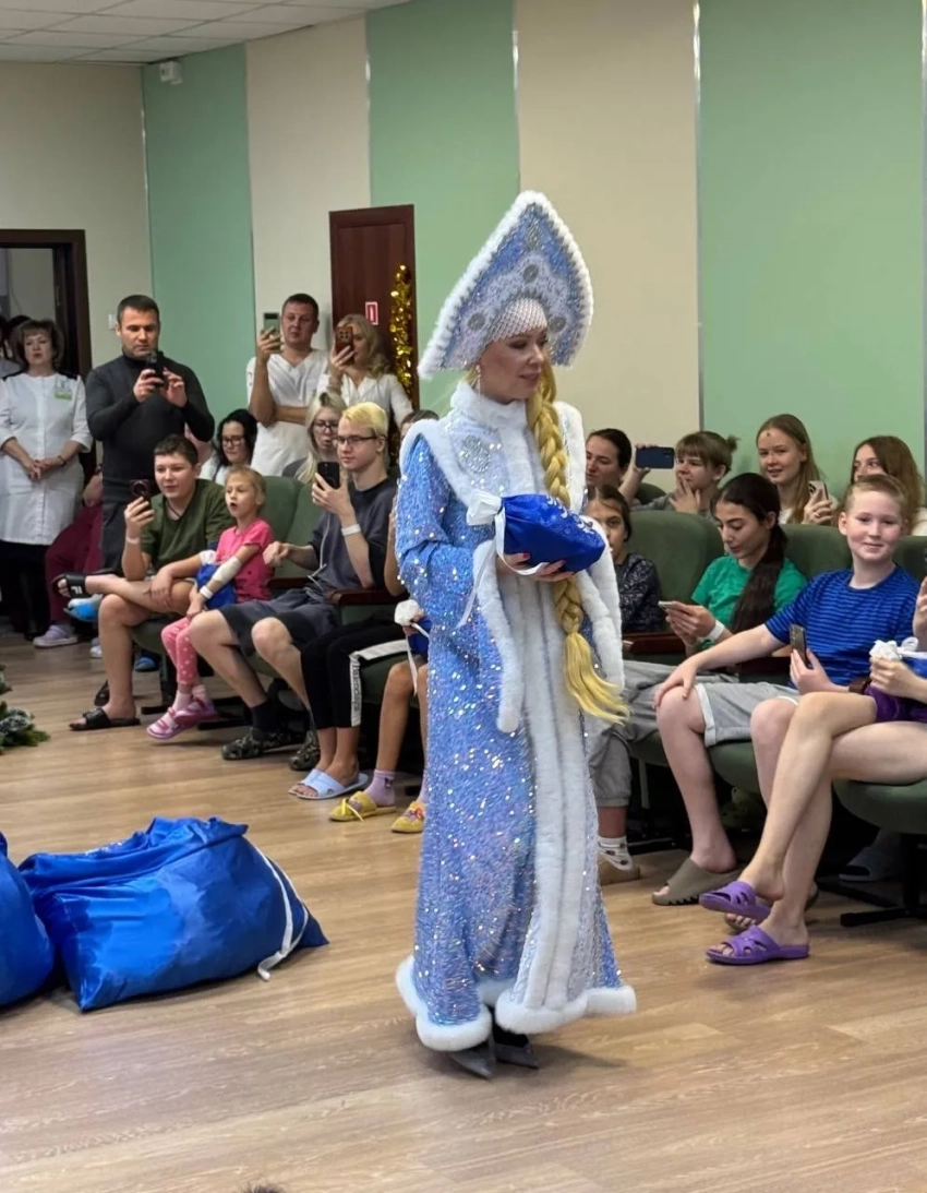 Шаман и Екатерина Мизулина посетили детскую больницу в образах Деда Мороза и Снегурочки