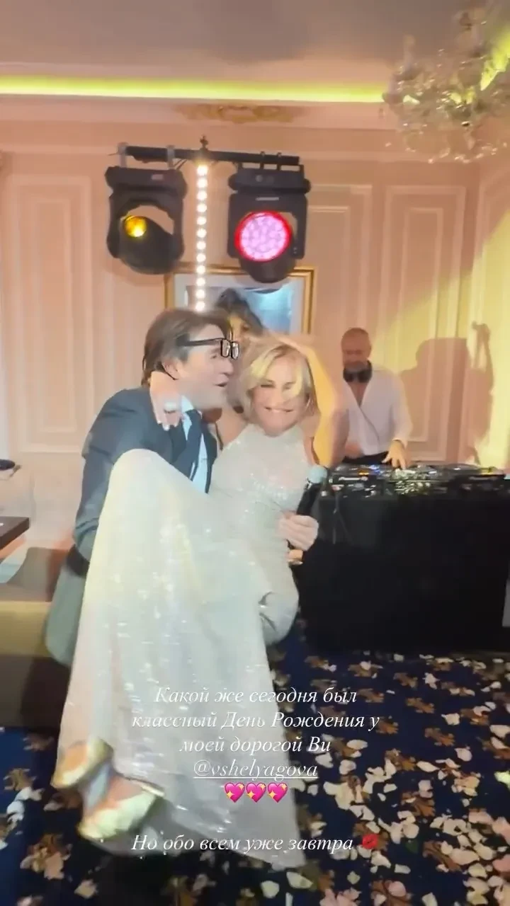 Дебют в роли певицы, четырёхъярусный торт с цветами и платье от Versace: Виктория Шелягова отметила 53-летие в компании Филиппа Киркорова, Андрея Малахова и Жасмин