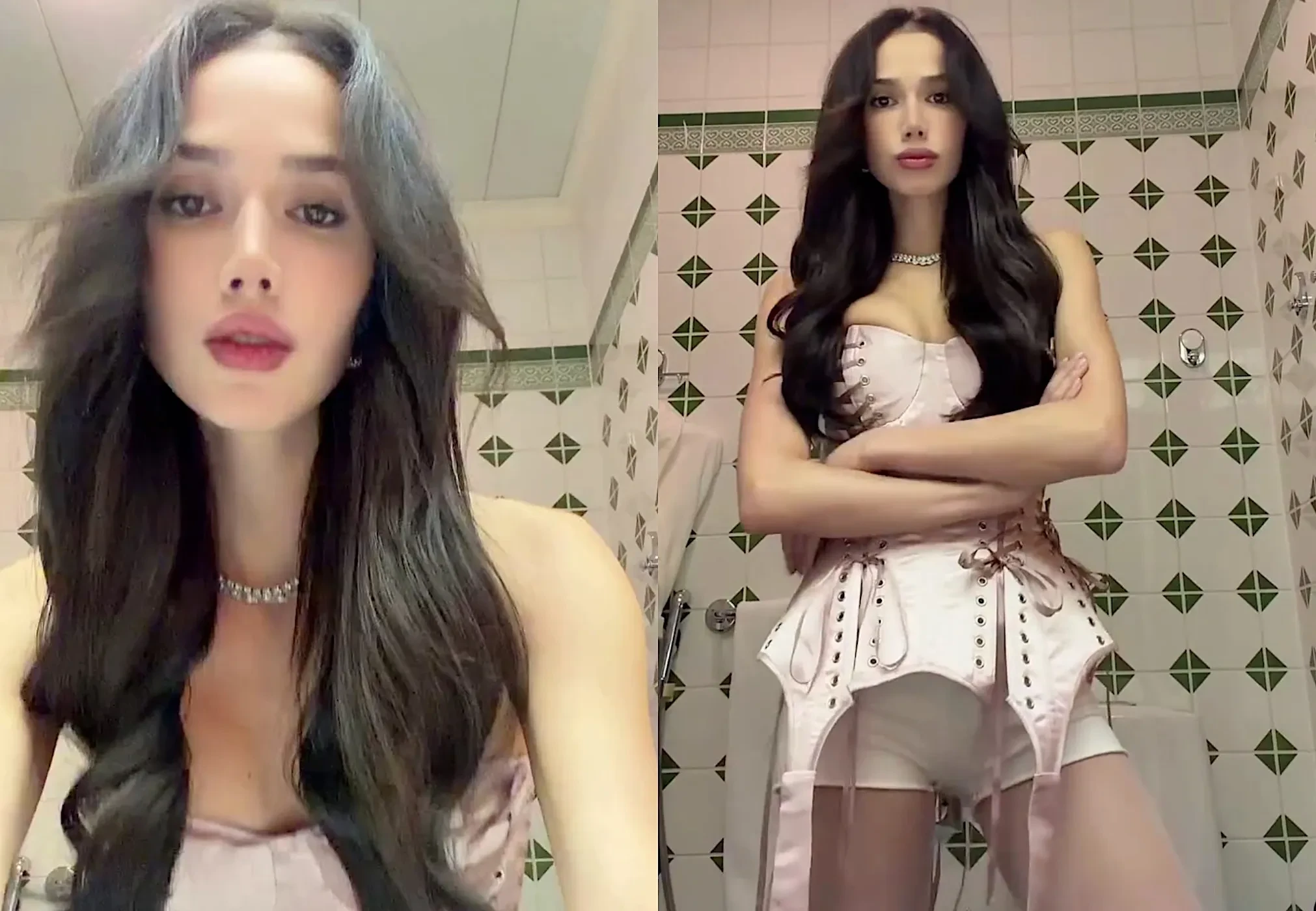23-летняя олимпийская чемпионка Алина Загитова, образы которой часто критикуют в сети, опубликовала новое видео. Фигуристка снялась в ванной комнате в розовом корсете с лентами, микрошортах и капроновых колготках.