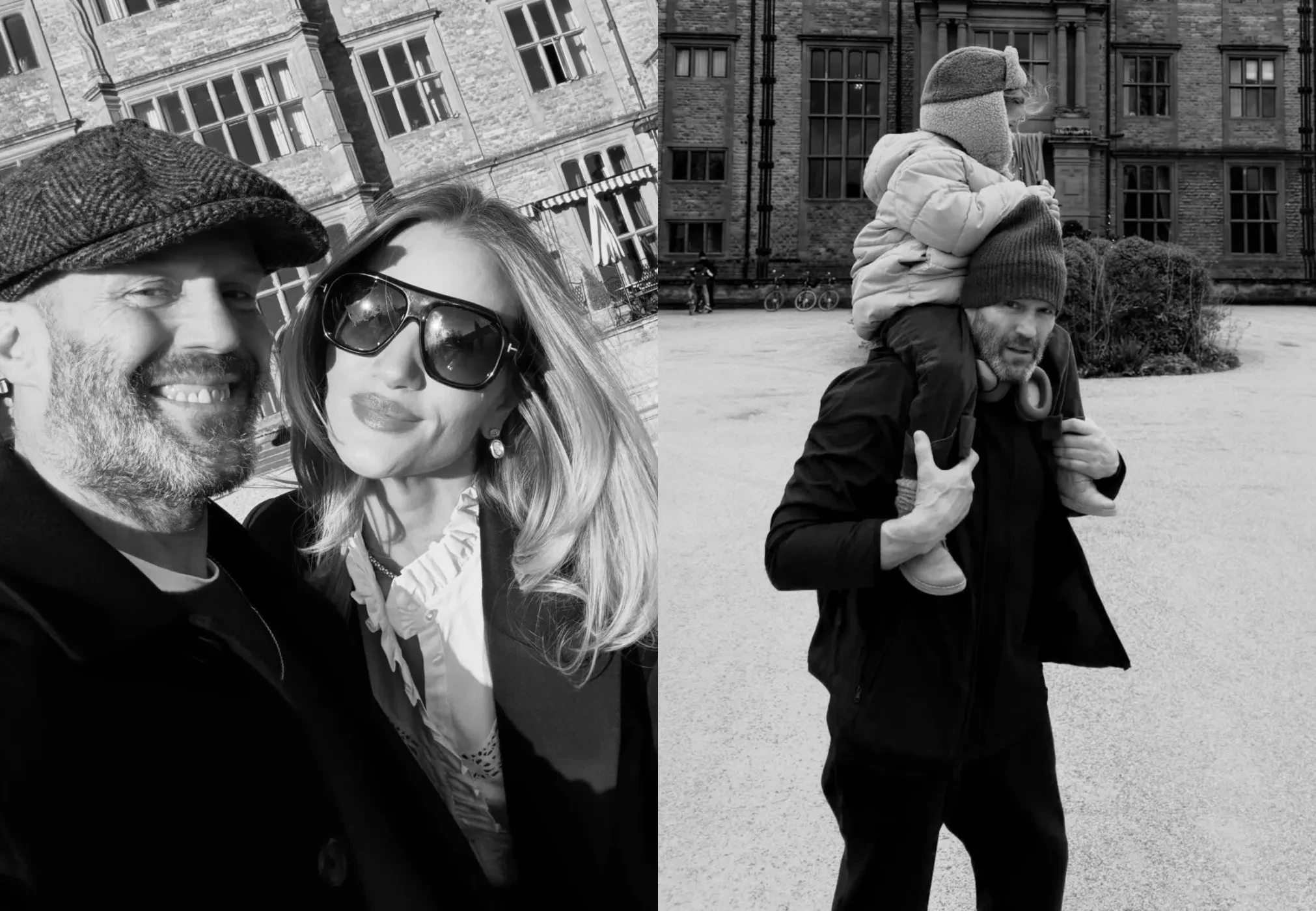 На чёрно-белых снимках 58-летний актёр, который нечасто делится с поклонниками семейными моментами, позирует с Рози и наследниками, восьмилетним Джеком и трёхлетней Изабеллой, во время недавней прогулки. Семья, помимо прочего, заглянула в тир, где Джек попробовал свои силы в стрельбе из ружья и лука.
