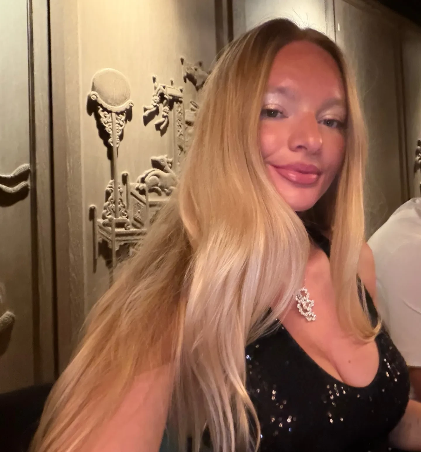 Именинница, которая выбрала для вечера вечернее чёрное платье в пол с пайетками и декольте, позировала для фото с подарками: огромным букетом алых роз и брендированными пакетами ювелирных украшений Bvlgari. В подборку Пескова также добавила несколько снимков с мужем Даниилом Ромашовым, за которого она, по сообщениям СМИ, вышла замуж в 2024 году.