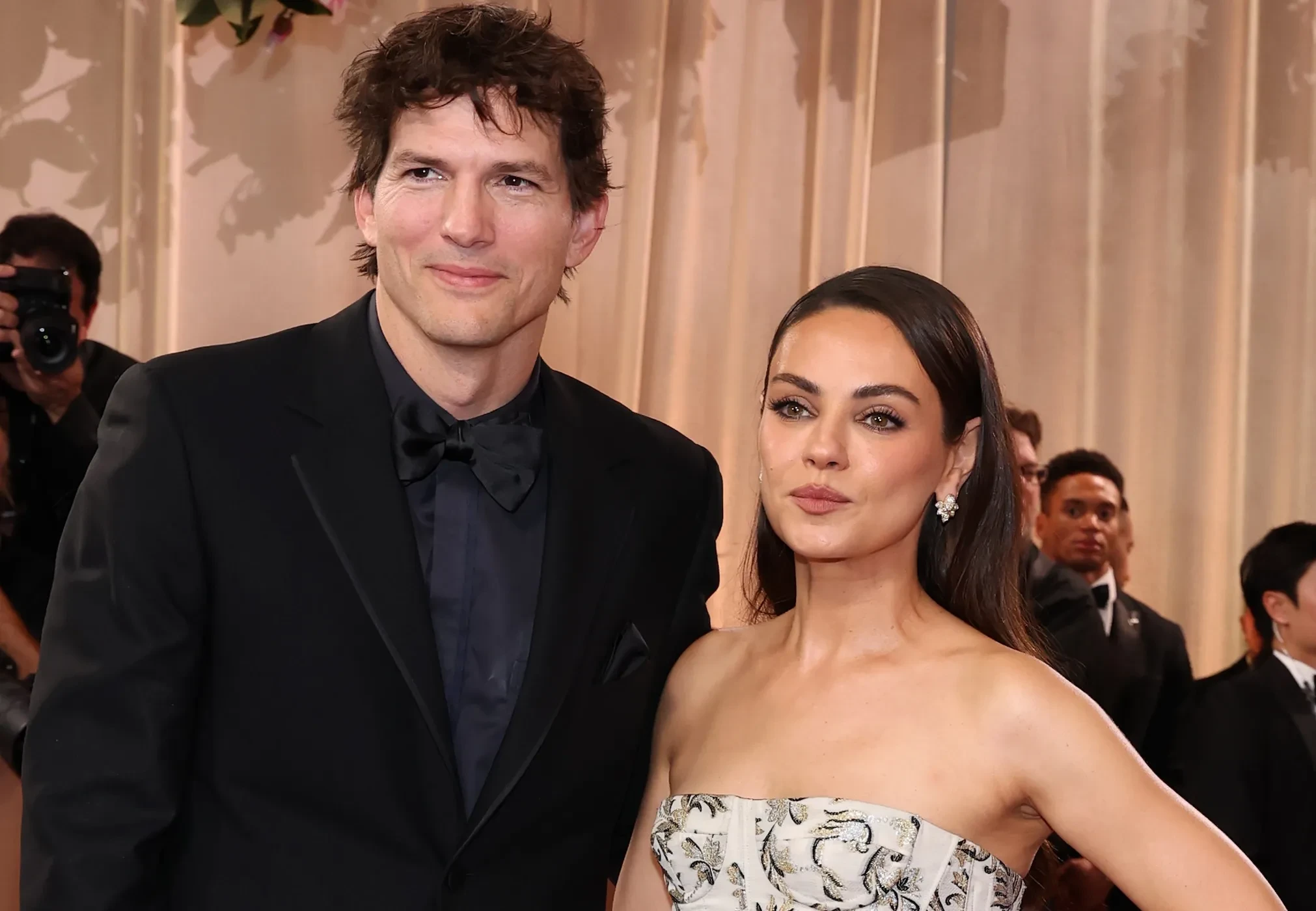 42-летняя Мила Кунис позировала в платье Carolina Herrera с цветочным принтом, а Аманда Сейфрид блистала в белом платье Versace. Ариана Гранде выбрала чёрное платье Vivienne Westwood, а Памела Андерсон премила образ от Ferragamo. Майли Сайрус и Зои Кравиц надели Saint Laurent.