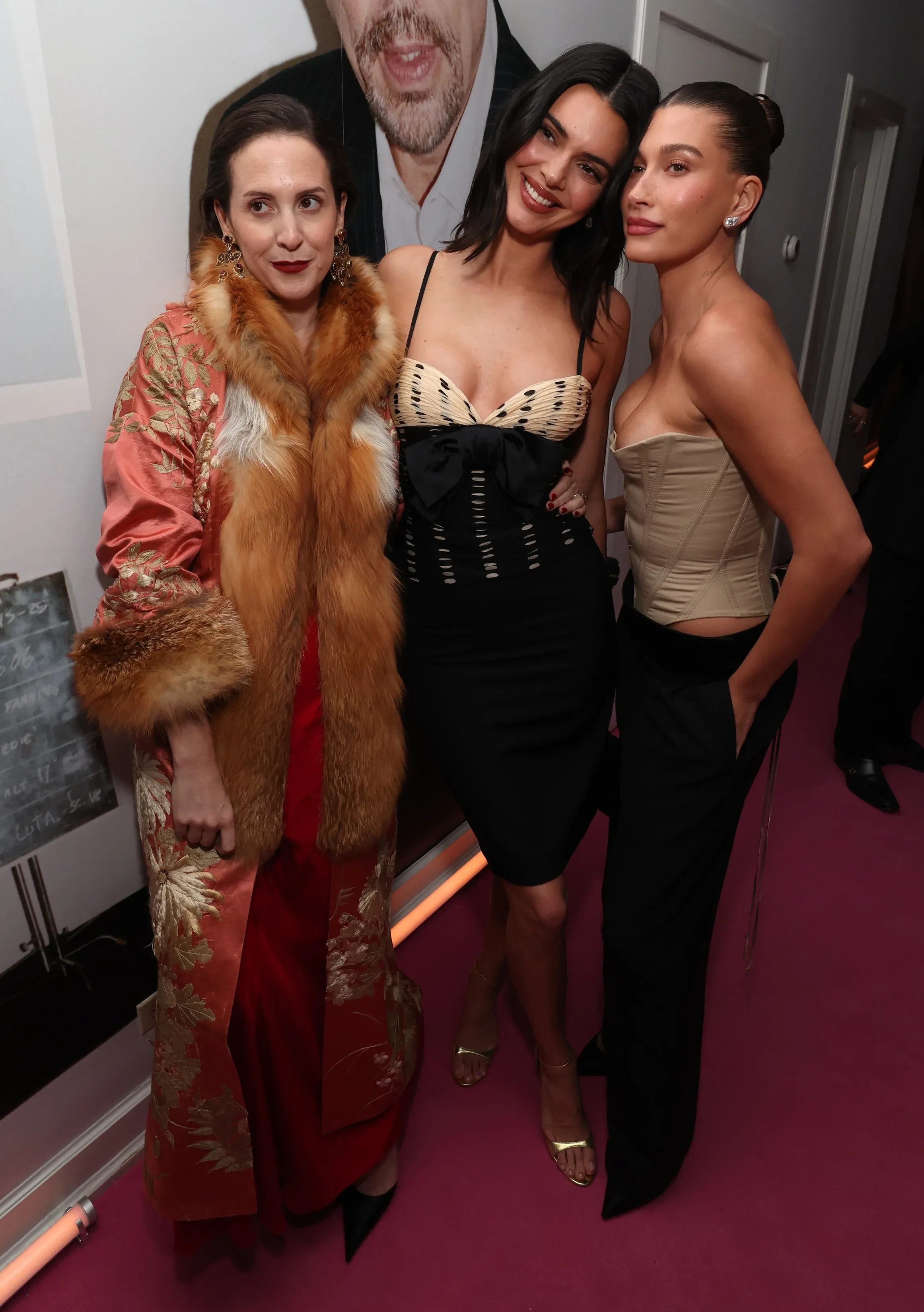 56-летняя Дженнифер Лопес пришла на вечеринку в блестящем бордовом платье и шубе в тон, а Хейли Бибер надела бежевый корсет с брюками. 37-летняя Эмма Стоун блистала в полупрозрачной юбке и чёрной блузе, а 28-летняя Сидни Суини вышла в свет в более "закрытом" платье, чем все привыкли. Кейт Хадсон появилась в белом кружевном платье с декольте, а 59-летняя Синди Кроуфорд и её дочь Кайя Гербер позировали в образах total black.