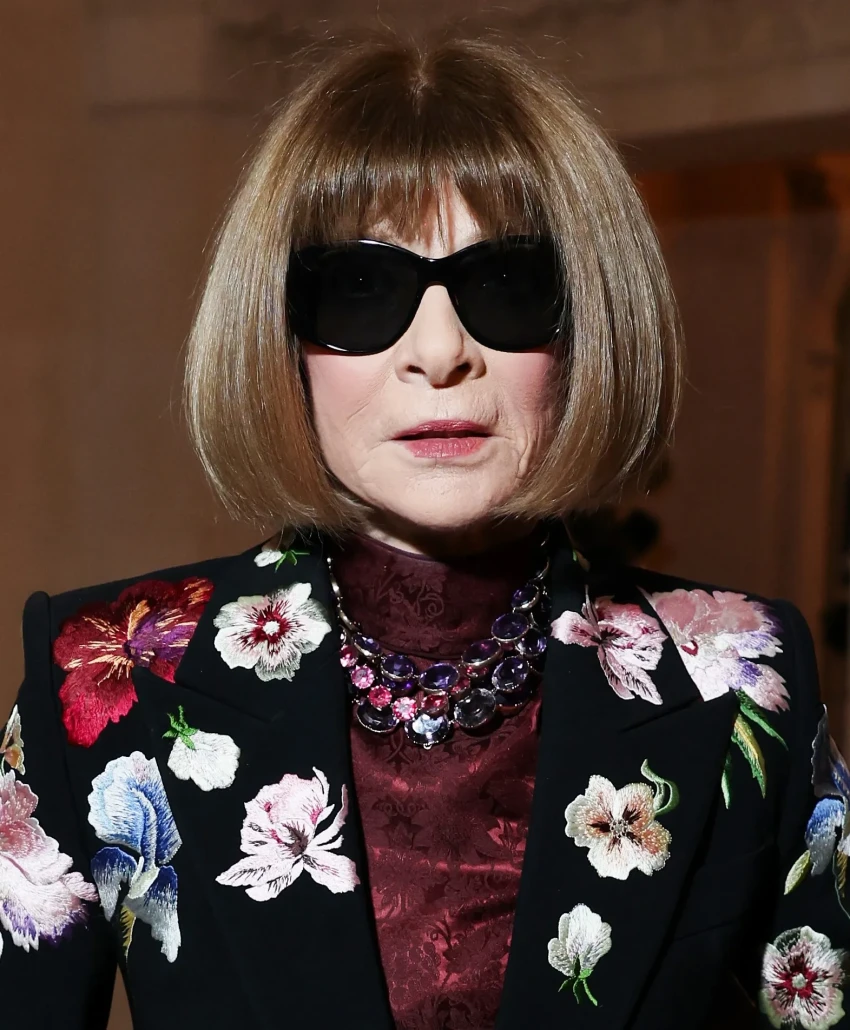 28-летняя модель и бывшая жена Венсана Касселя Тина Кунаки пришла на показ в чёрном платье с декольте, а 76-летняя Анна Винтур надела пальто с цветочной вышивкой. Звезда французского кино Софи Марсо, которая в этом году отметит 60-летний юбилей, позировала в кожаной юбке и дублёнке.