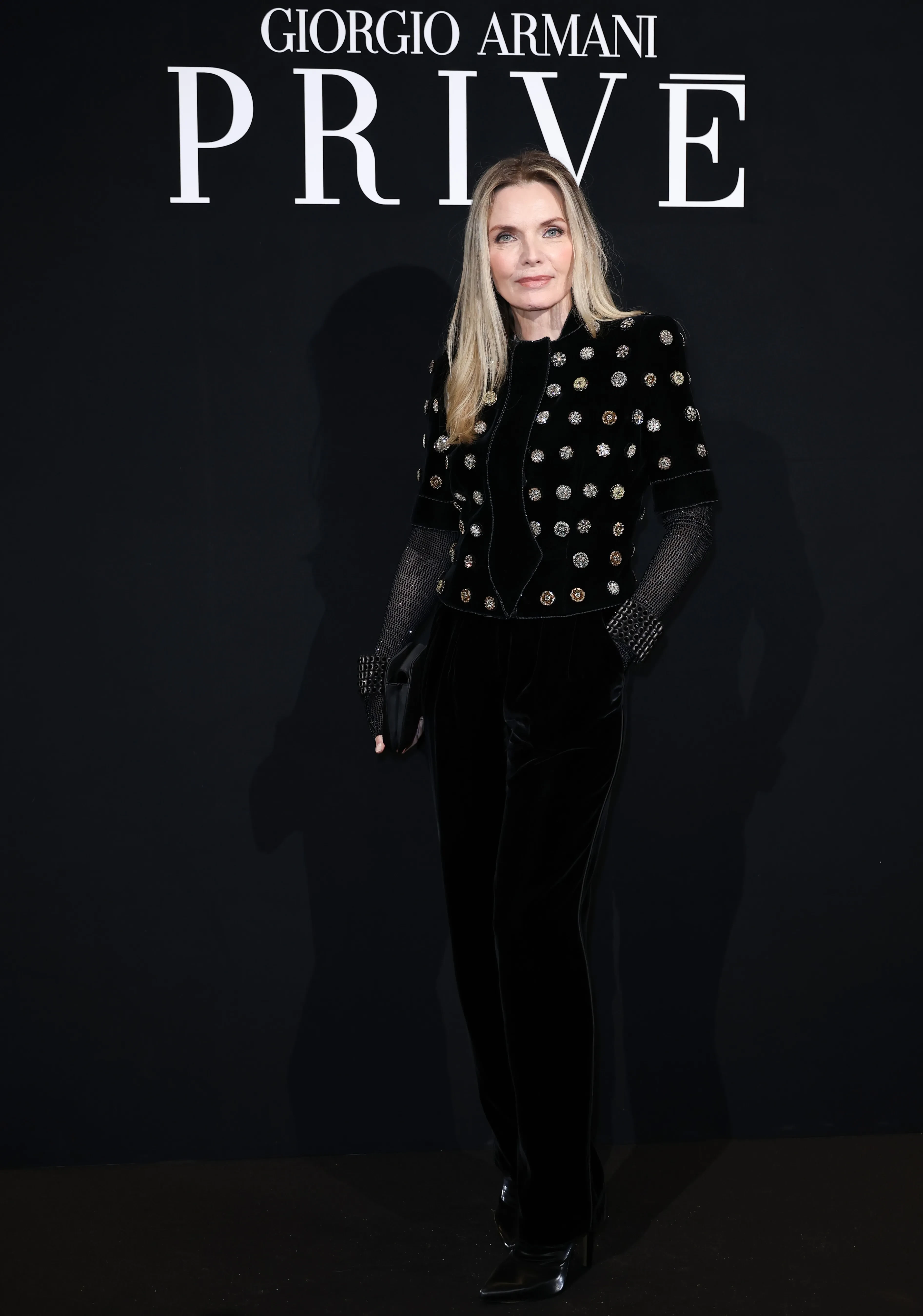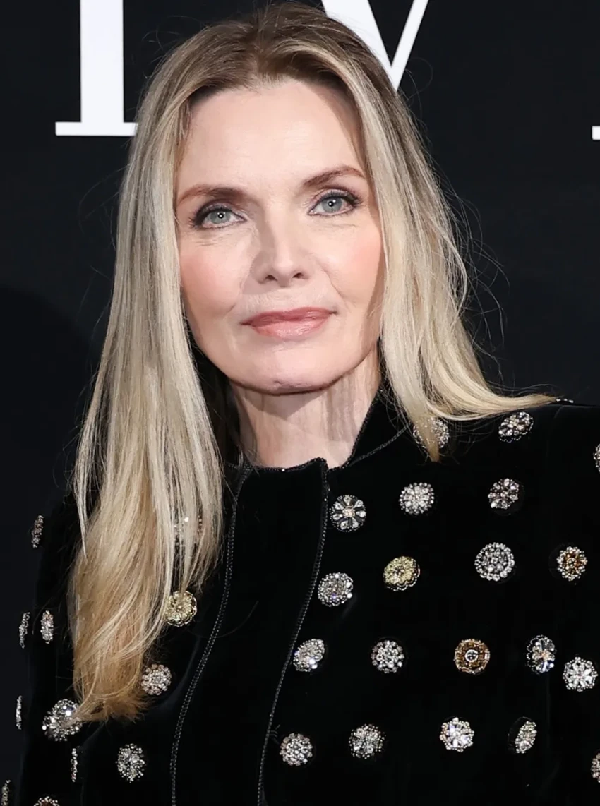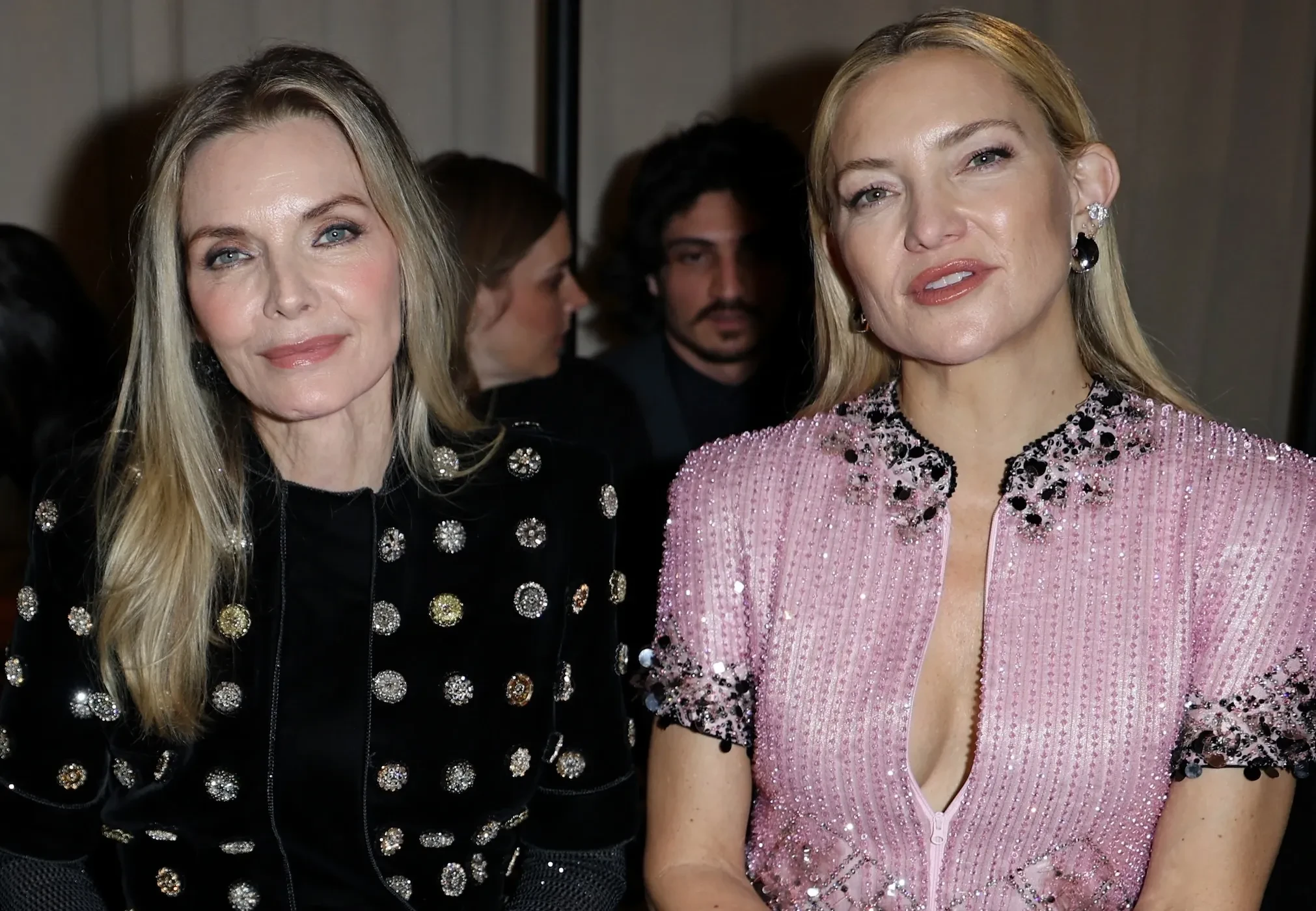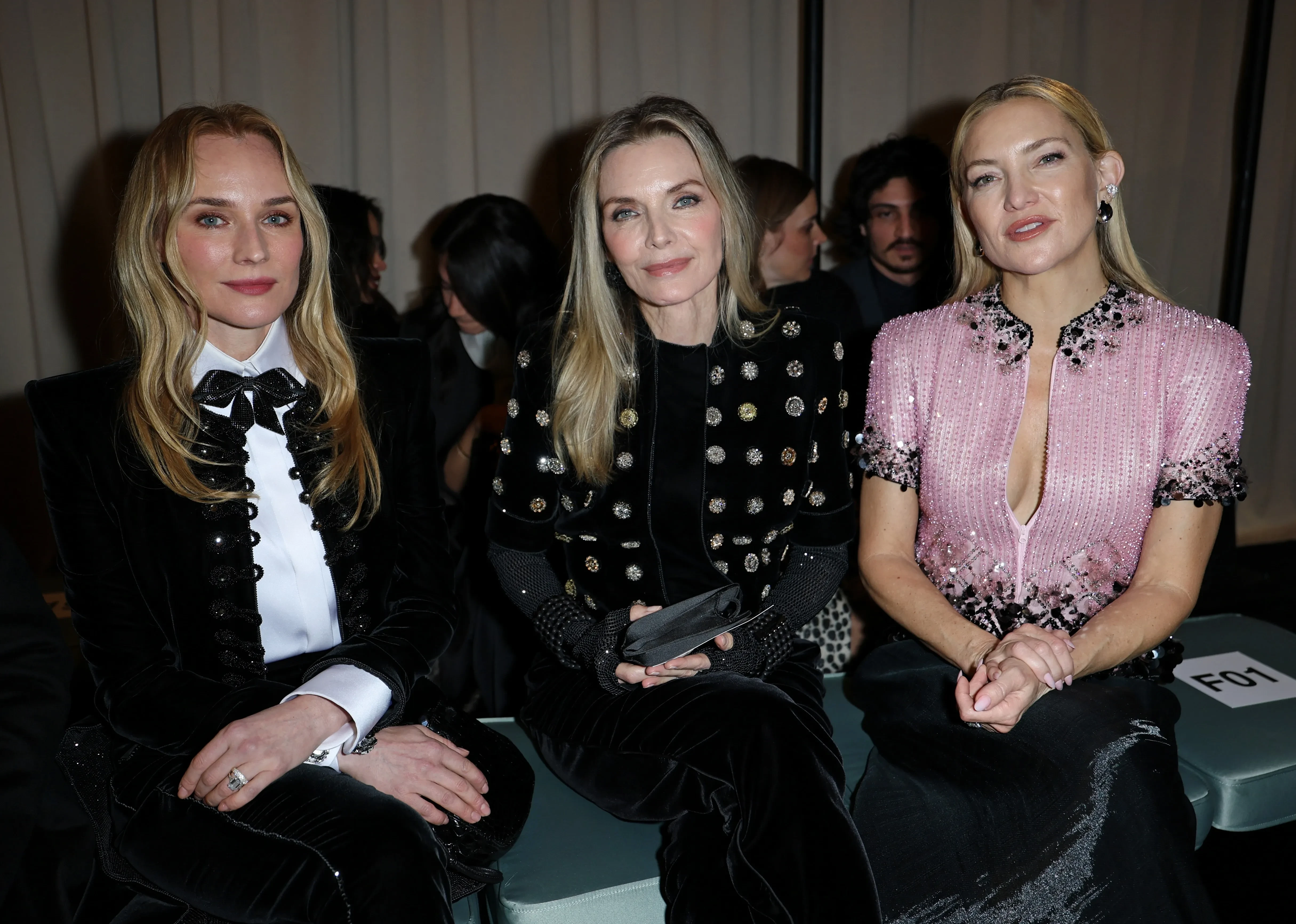 46-летняя Кейт Хадсон пришла на показ в шёлковых брюках и розовом топе с пайетками, а 67-летняя Мишель Пфайффер в чёрном бархатном костюме.