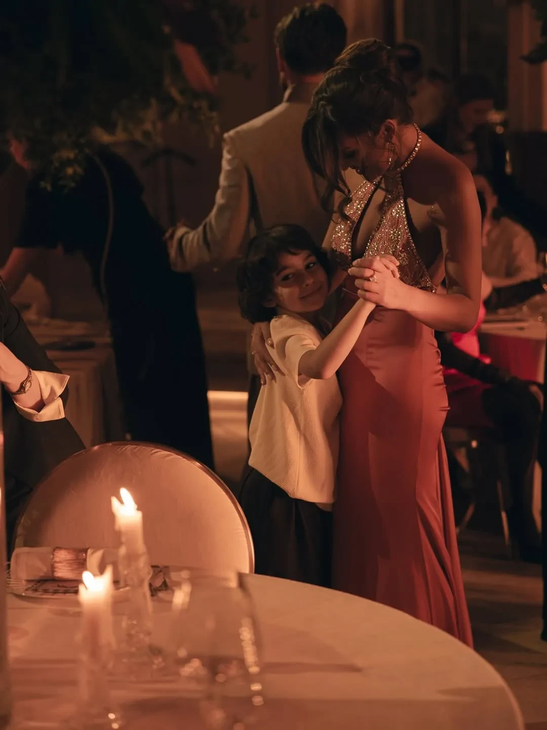 Мельникова появилась перед гостями в платье Mastersuit, расшитом кристаллами. Яна Рудковская надела платье лилового оттенка с сумкой Dior в тон, а Светлана Бондарчук пришла в чёрном. Галеристка и бывшая жена Бориса Белоцерковского Полина Аскери позировала в белом наряде и подарила подруге её портрет.