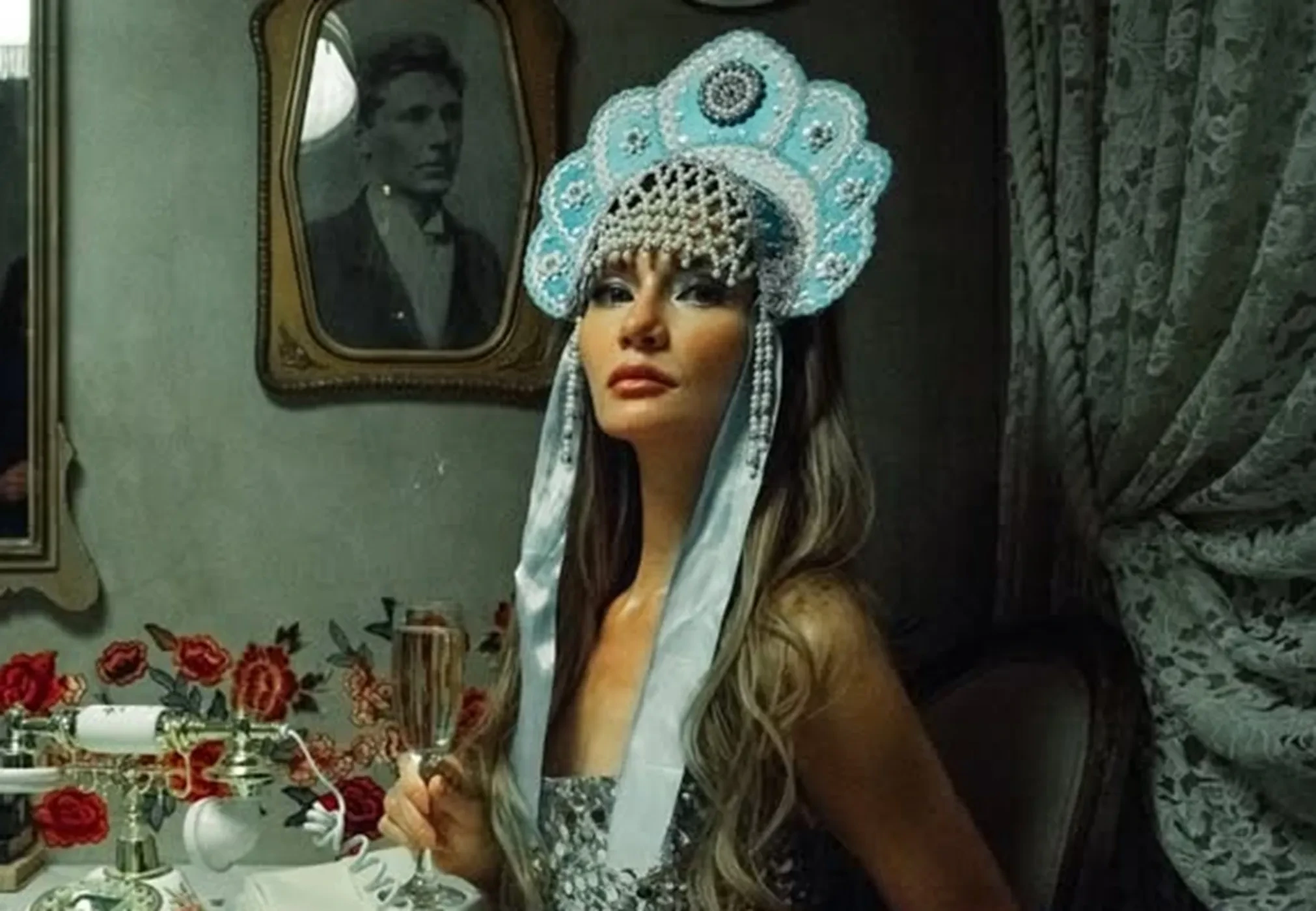 Вечер прошёл в ресторане известной сети "Мари Vanna", концепция которого полностью построена на русской культуре и ностальгии. Для фото Делви попозировала в кокошнике и на фоне полок с матрёшками.