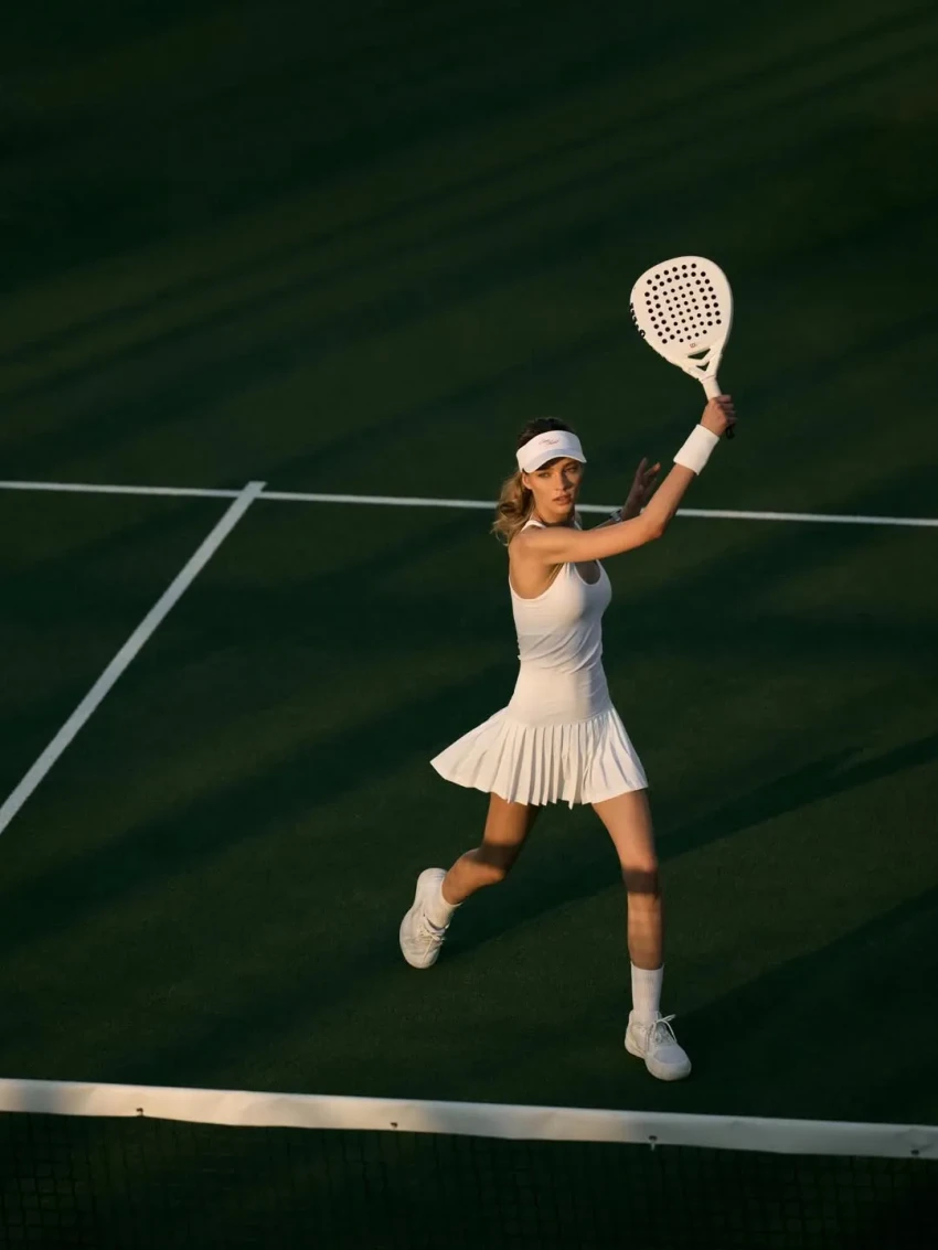 27-летняя Алеся Кафельникова снялась в новой фотосессии в Дубае. На снимках модель и дочь звезды тенниса Евгения Кафельникова позирует на корте в образах теннисистки в съёмке для падел-клуба Casa Padel.