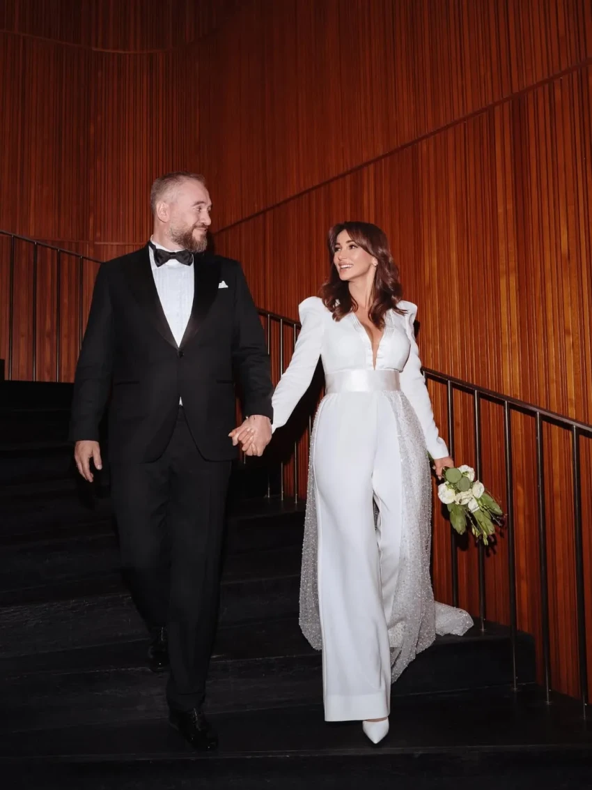 Анфиса Чехова сообщила, что впервые вышла замуж — за 44-летнего актёра и продюсера Александра Златопольского. В своём инстаграме* она показала кадры из загса, на которых предстала в белом брючном наряде.