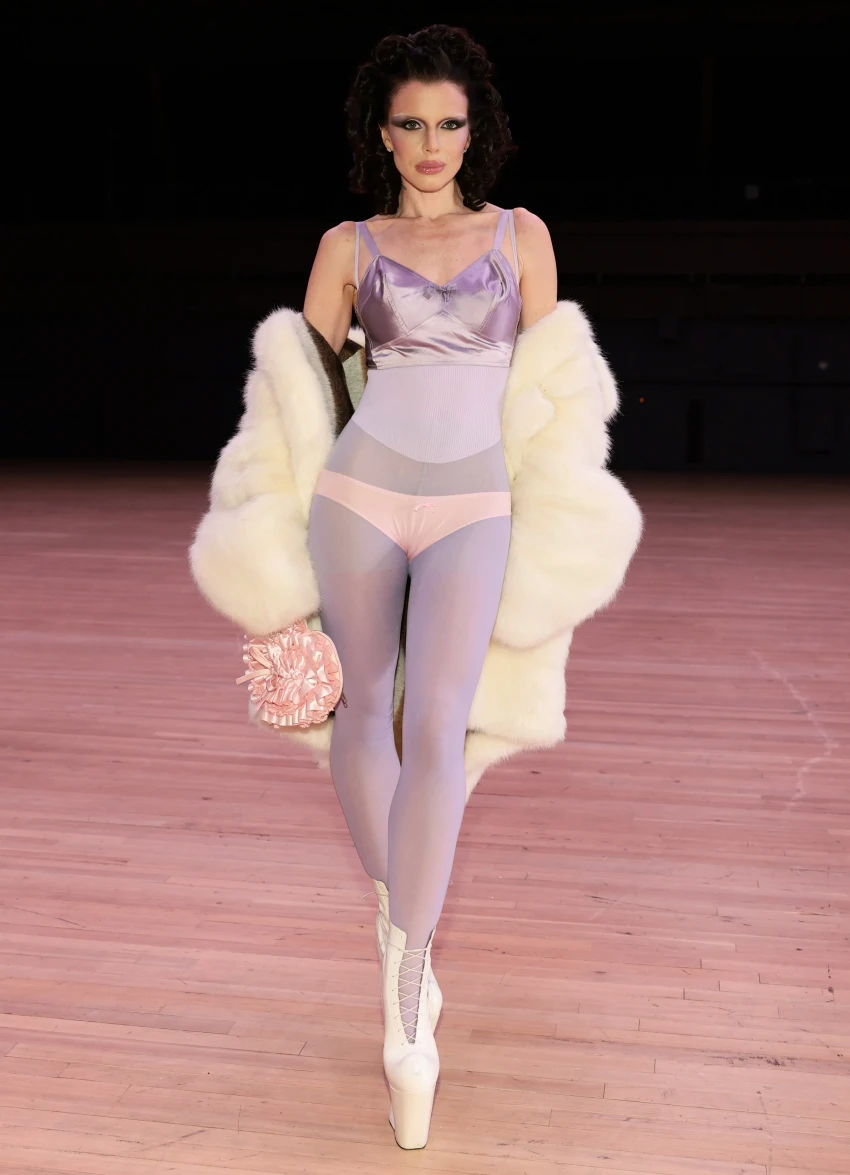 36-летняя Джулия Фокс пришла в лиловых колготках, бюстгальтере и белой шубе, а младшая сестра Пэрис Хилтон и жена наследника известной семьи Ротшильд, Джеймса, 42-летняя Ники, позировала в платье Marc Jacobs в стиле babydoll. Анна Винтур пришла в платье с цветочным принтом и зелёном пальто с мехом.