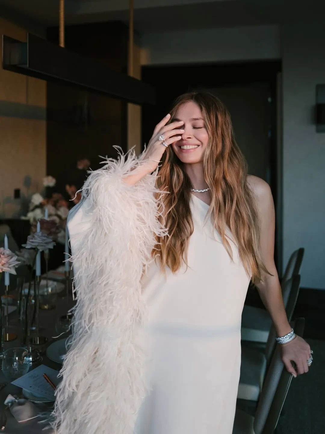 Интерьер и наряды именинницы и гостей были выдержаны в белой гамме. На снимках Вера Брежнева в платье с перьями позирует в ресторане в кругу близких. "Воспоминания о самом тёплом дне рождения", — написала Брежнева.