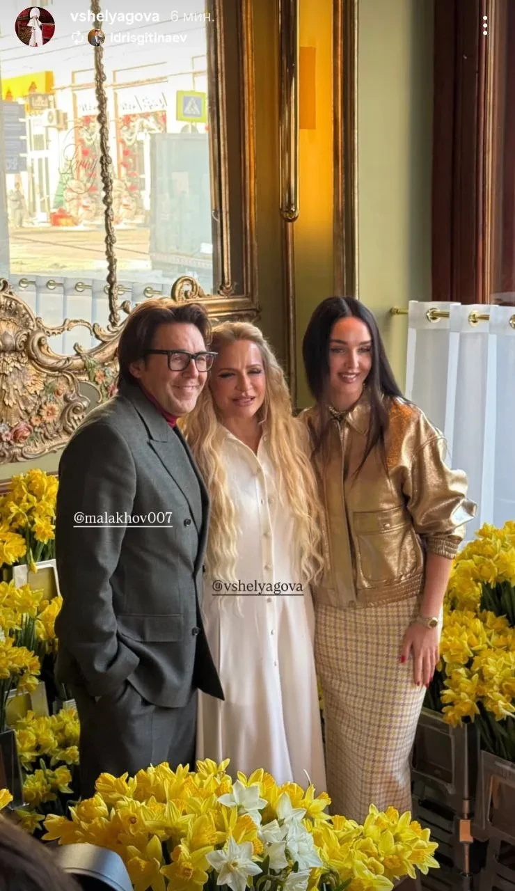 Блины, казачий хор и "жёлтый" дресс-код: Яна Рудковская, Андрей Малахов, Кристина Потупчик на Масленице Виктории Шеляговой в Savoy