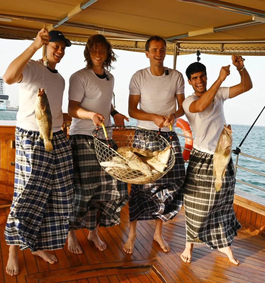 Накануне старта турнира Qatar ExxonMobil Open в рамках серии ATP-500 в Дохе звёзды тенниса в лице Андрея Рублёва, Даниила Медведева, Янника Синнера и Карлоса Алькараса отправились на традиционную катарскую рыбалку. В официальном инстаграм*-аккаунте соревнования показали, как соперники провели время.