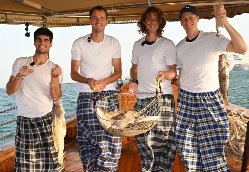 Андрей Рублёв, Даниил Медведев, Янник Синнер и Карлос Алькарас порыбачили вместе перед турниром в Дохе