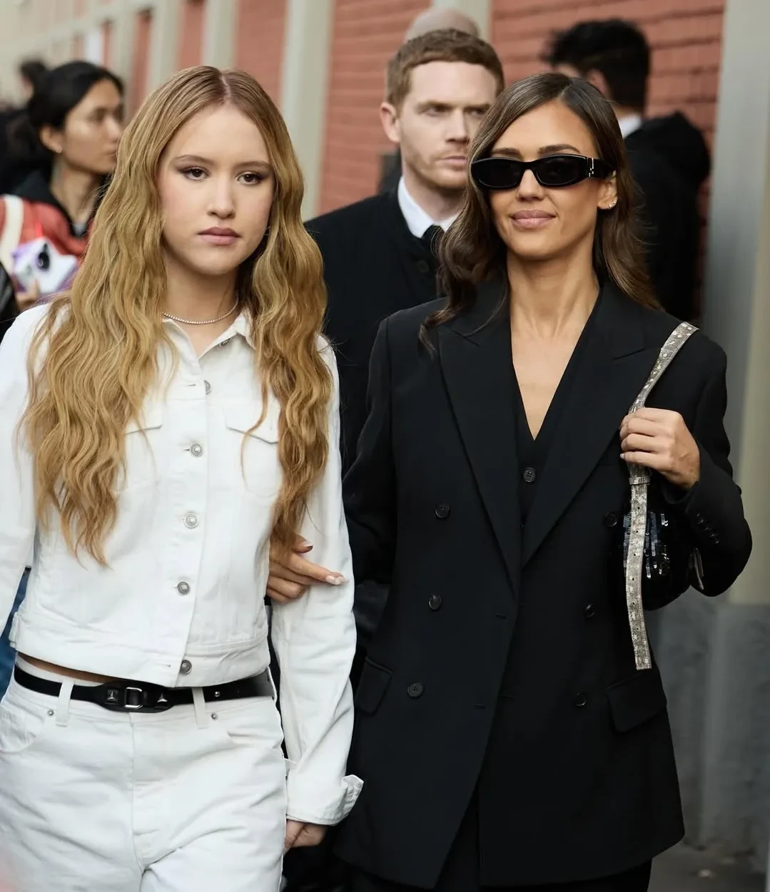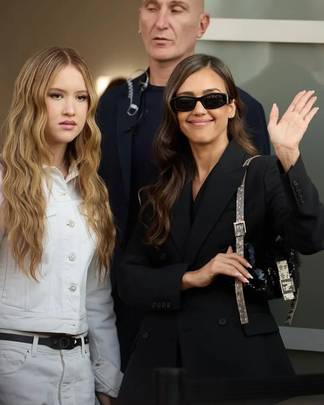 61-летняя Моника Беллуччи пришла на показ в чёрном брючном костюме с белой рубашкой и солнцезащитных очках. Похожие образы надели 44-летняя Джессика Альба, которая позировала фотографам вместе с 14-летней дочерью Хэвен, и Ума Турман. Елена Перминова пришла в платье и чёрных туфлях с носками в тон.