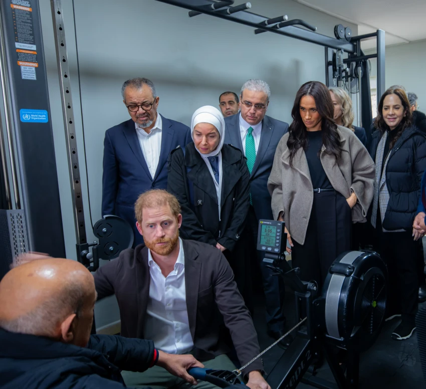 Во второй день своего первого за полтора года международного совместного визита супруги вместе с делегацией ВОЗ посетили центр для наркозависимых и фонд развития человеческого потенциала в Аммане. 44-летняя Меган Маркл появилась на публике в чёрных брюках и коротком сером пальто, а принц Гарри надел белую рубашку и пиджак.