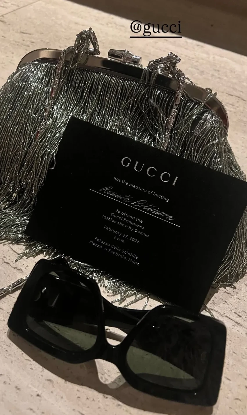 59-летняя Рената Литвинова, которая недавно тайно приезжала в Россию, посетила дебютный показ своего друга Демны Гвасалии для Gucci. Актриса и режиссёр показала детали своего образа в соцсетях.
