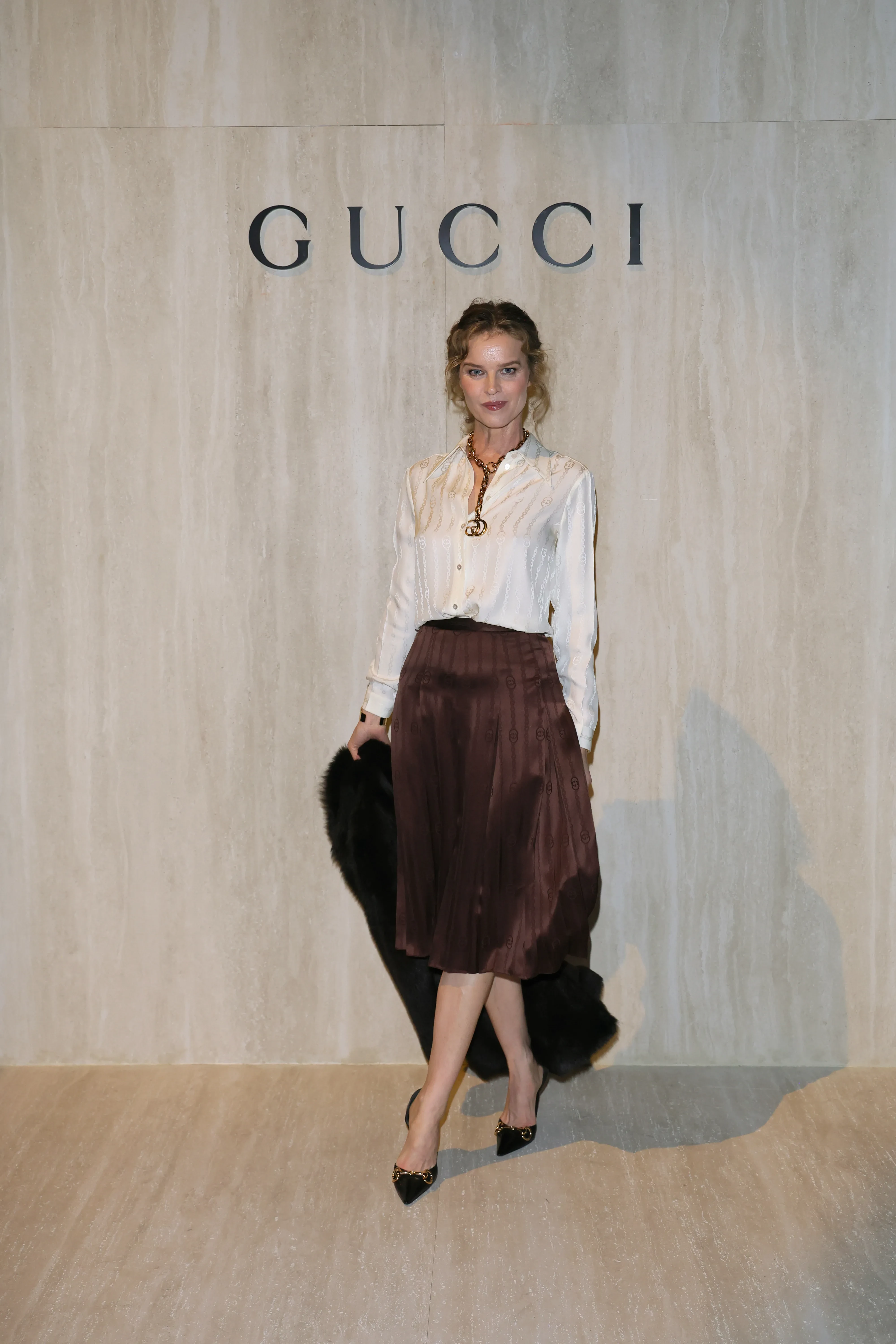 Рената Литвинова с дочерьюРената ЛитвиноваАрина СоболенкоАрина СоболенкоДонателла Версаче и Демна ГвасалияДонателла Версаче и Деми МурНадя Ли КоэнПэрис и Ники ХилтонНики и Пэрис ХилтонРомео БекхэмДонателла Версаче и Ромео БекхэмДжорджина РодригесДжорджина РодригесЕва ГерциговаАлессандро МикелеИзабелла ФеррариEsDeeKidПо подиуму в этот вечер прошлись сплошь звёзды. Сенсацией стал выход 52-летней Кейт Мосс в блестящем платье с экстремальным "декольте" на спине, открывающим стринги с логотипом. Супермодель дефилировала под песню итальянской дивы 1960-х Орнеллы Ванони Tu Si' Na Cosa Grande. В показе также приняли участие трансгендерная* дочь Илона Маска Вивьен Уилсон и Эмили Ратаковски.