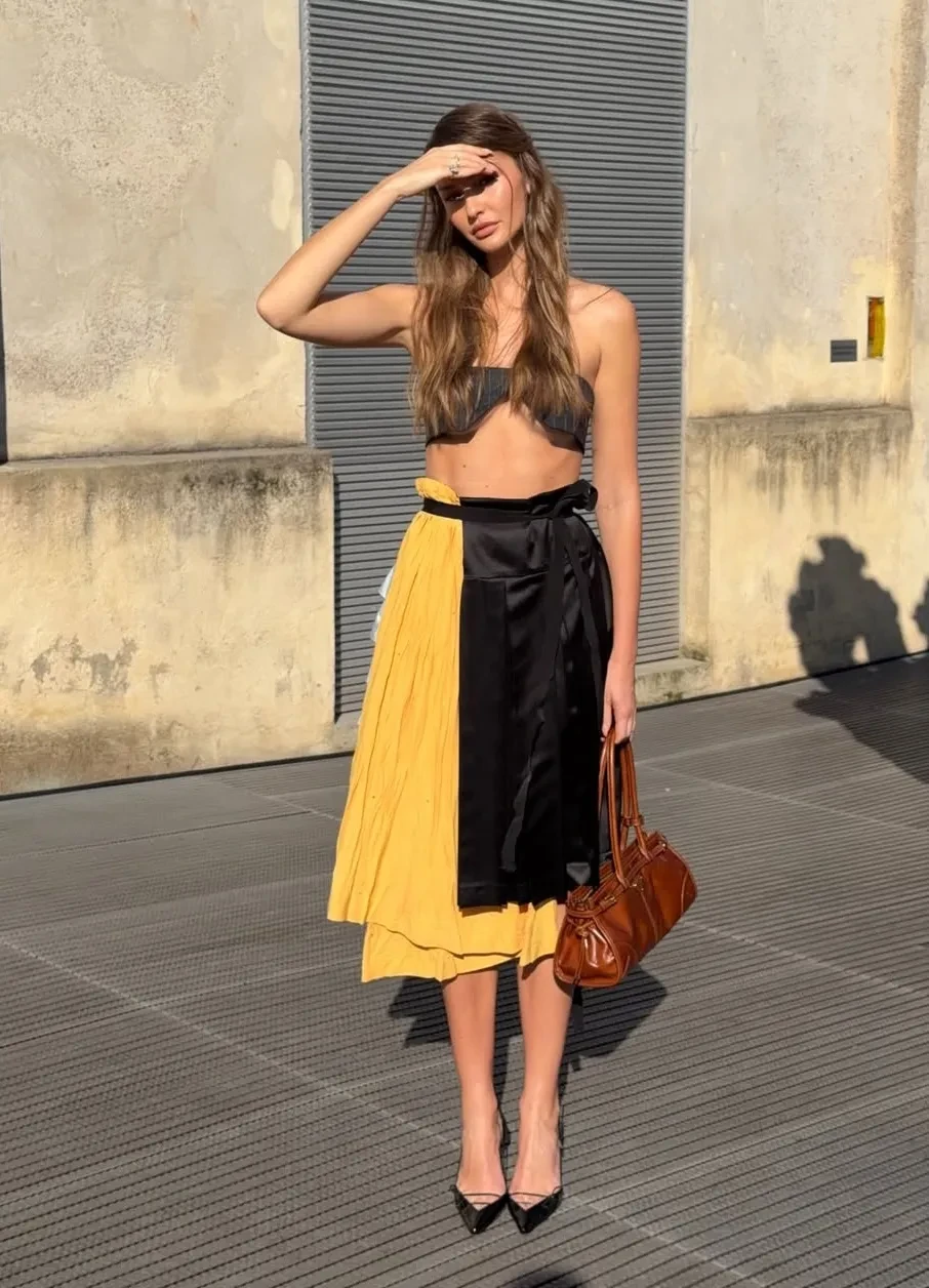 Блогерша Алла Брулетова пришла на показ Moschino в"мешке из-под картошки" и выгуляла яркие образы на других шоу, включая Marni. На показ этого бренда пришла и Ксения Шипилова. Также она посетила показ Enfants Riches Deprimes в Париже и примерила коллекцию Versace.