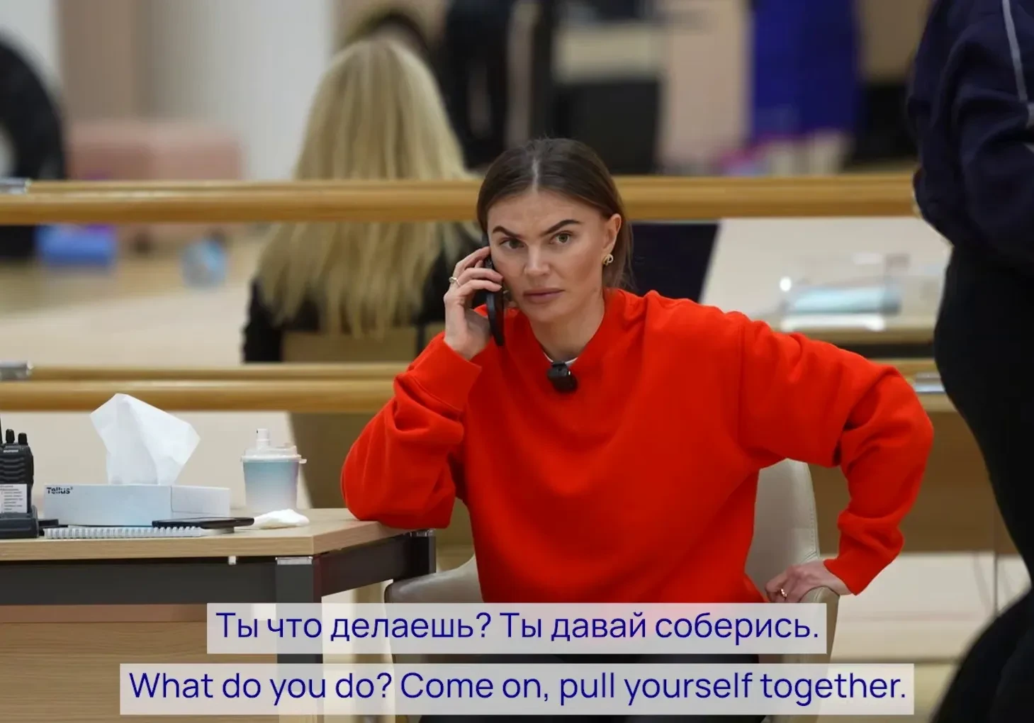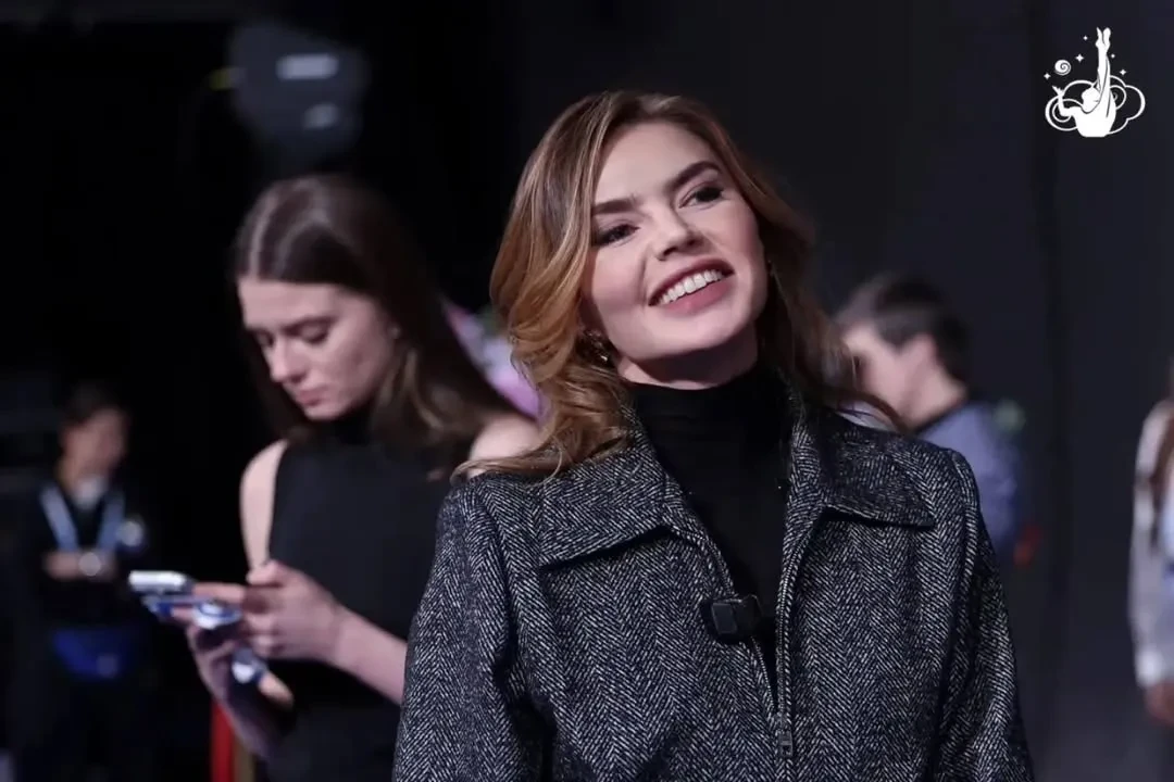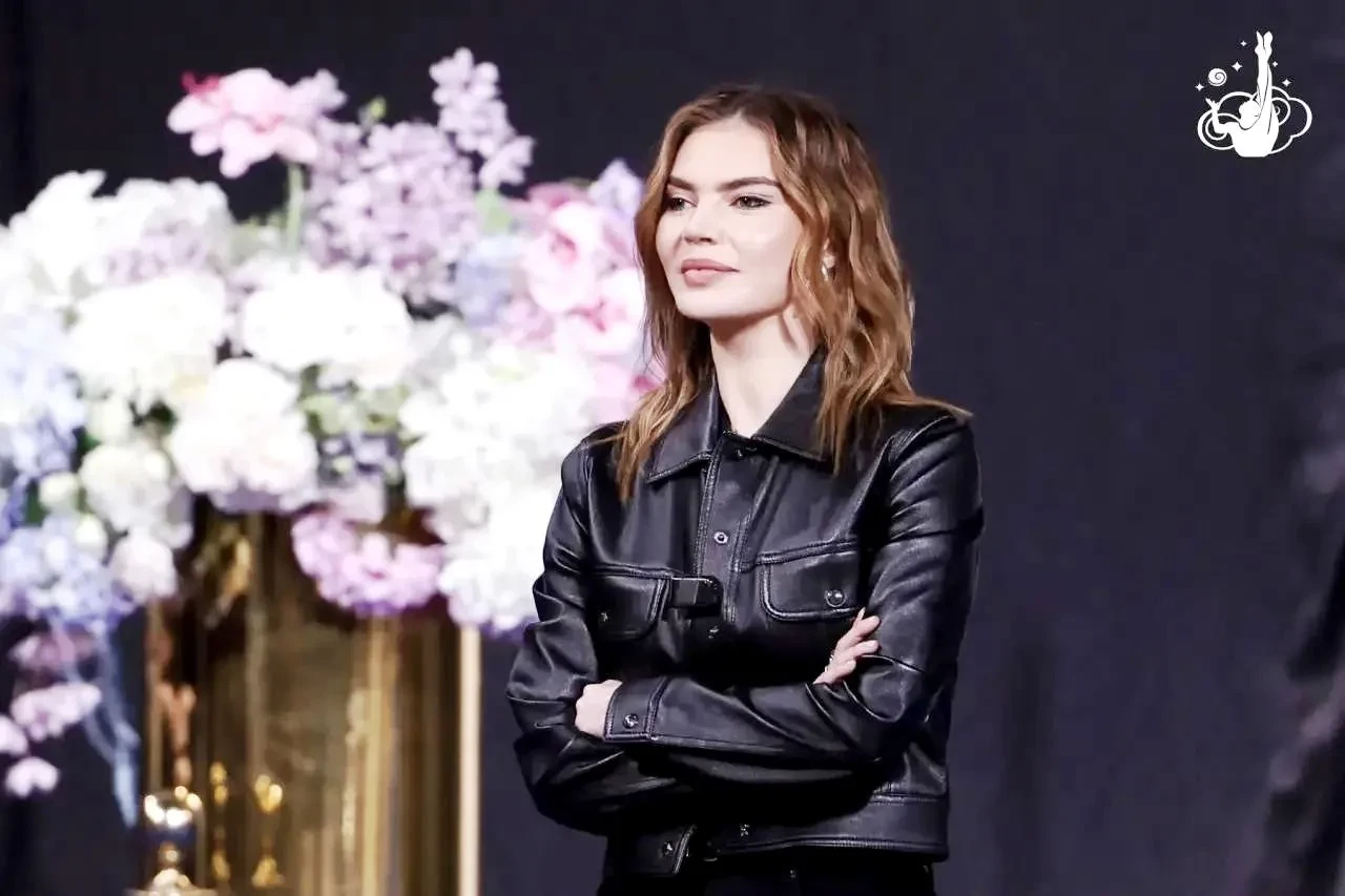 Перед камерами 42-летняя олимпийская чемпионка появилась в укороченном кожаном пиджаке, а также в костюме с приталенным жакетом из серого твида с классическим узором "ёлочка" и такой же юбкой. Она поддержала воспитанниц своей академии "Небесная грация", которые принимают участие в соревнованиях, и дала им наставления.
