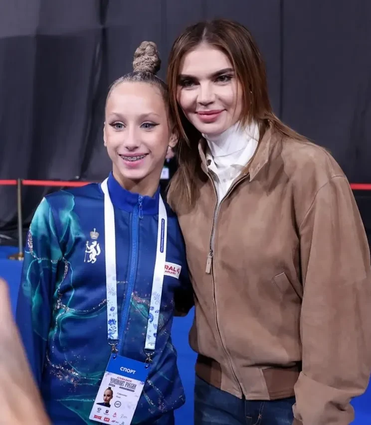 42-летняя олимпийская чемпионка появилась перед участниками соревнований и гостями в белой водолазке, коричневом бомбере и джинсах. Кабаева поддержала воспитанниц своей академии "Небесная грация", которые приняли участие в чемпионате.