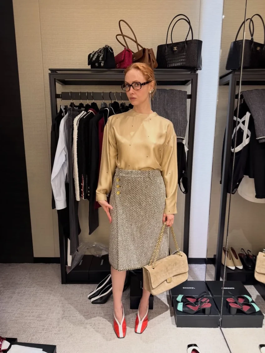 Блогерши Диана Коркунова и Алла Брулетова сходили на вечеринку, а светская львица Дарья Лисиченко в костюме из кожи посетила показ Loewe и ужин Schiaparelli. Тем временем Ксения Чилингарова пришла на шоу Chanel в твидовом костюме с мини-юбкой.