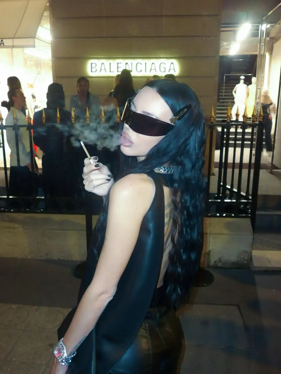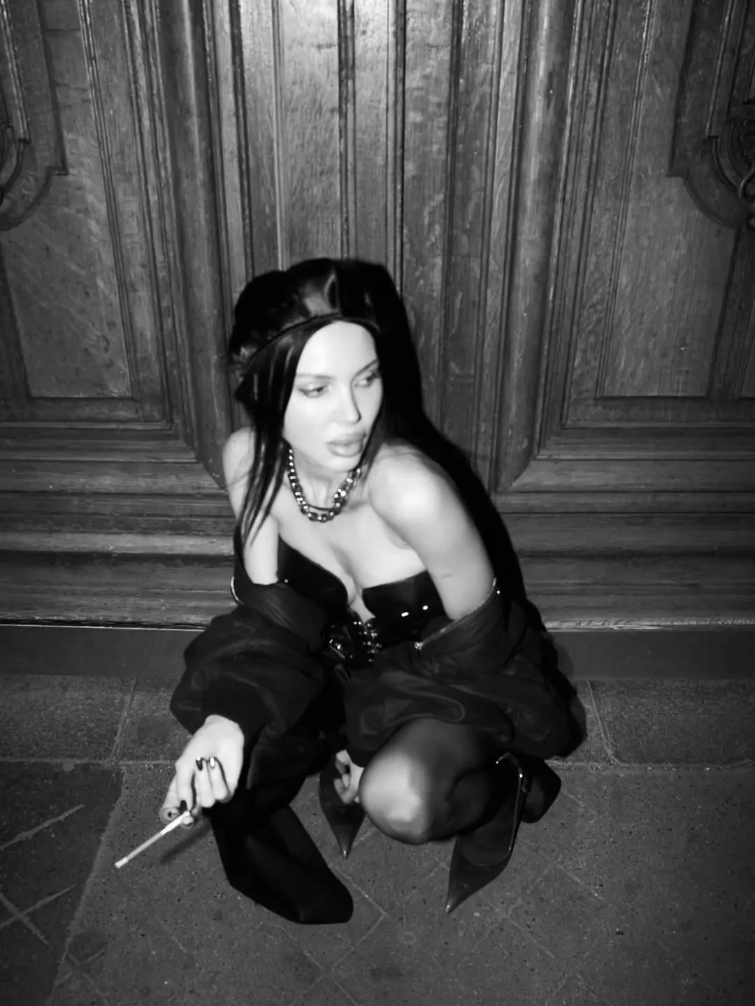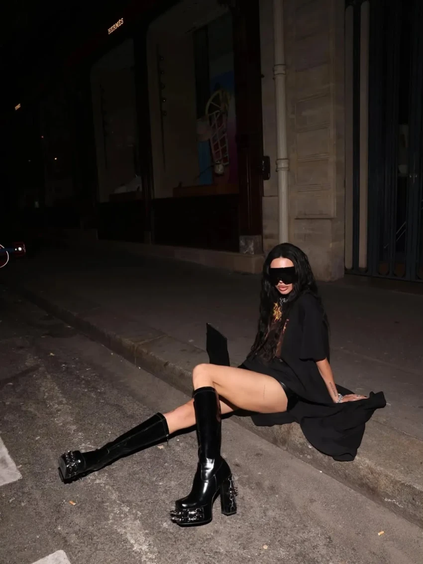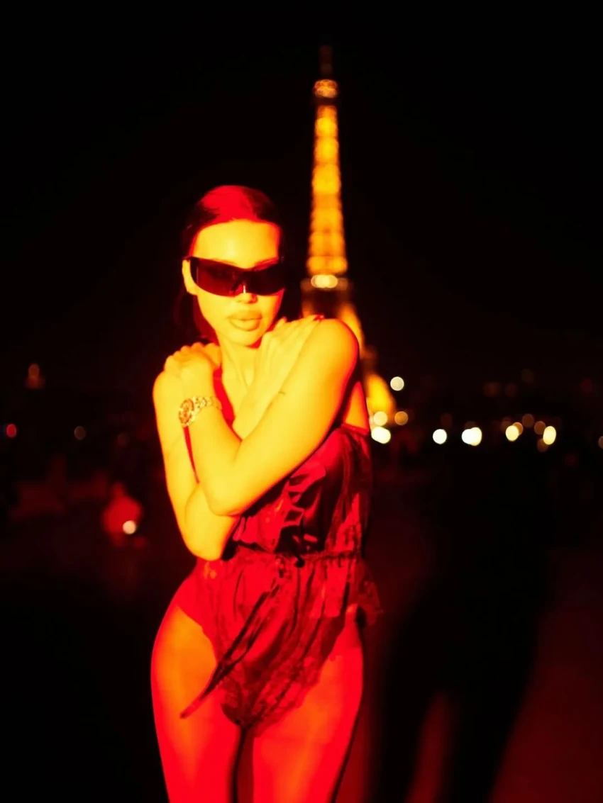 Самойлова посетила несколько модных показов и вечеринок, куда она ходила в образах Balenciaga, Schiaparelli, Saint Laurent и других брендов. На новых снимках мать четверых детей позирует в легинсах с косухой, кожаных микрошортах и корсете, кружевном боди, шубе с колготками, блестящем облегающем платье, нижнем белье и не только.