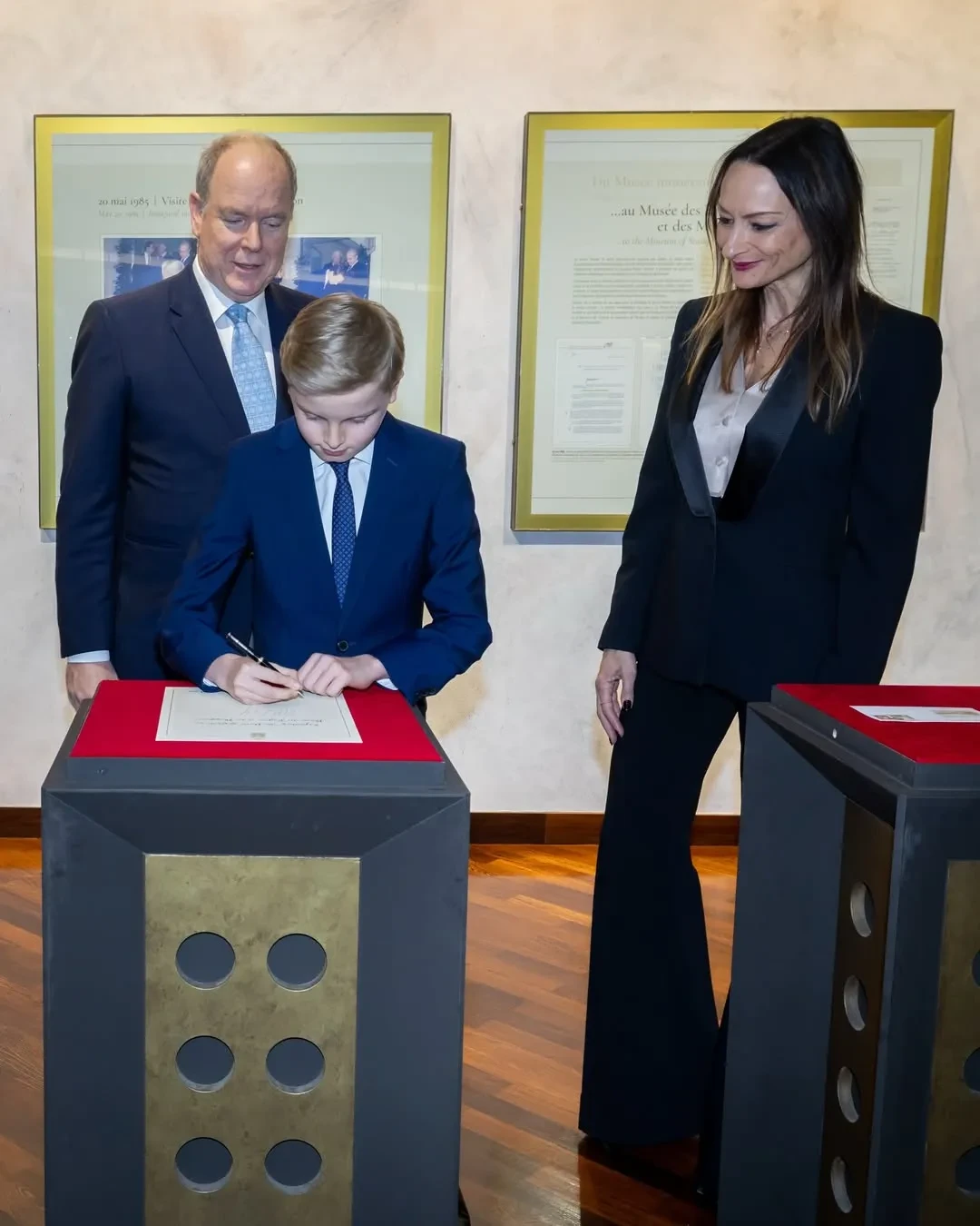 Князь Монако Альбер II с сыном Жаком с сотрудниками музея