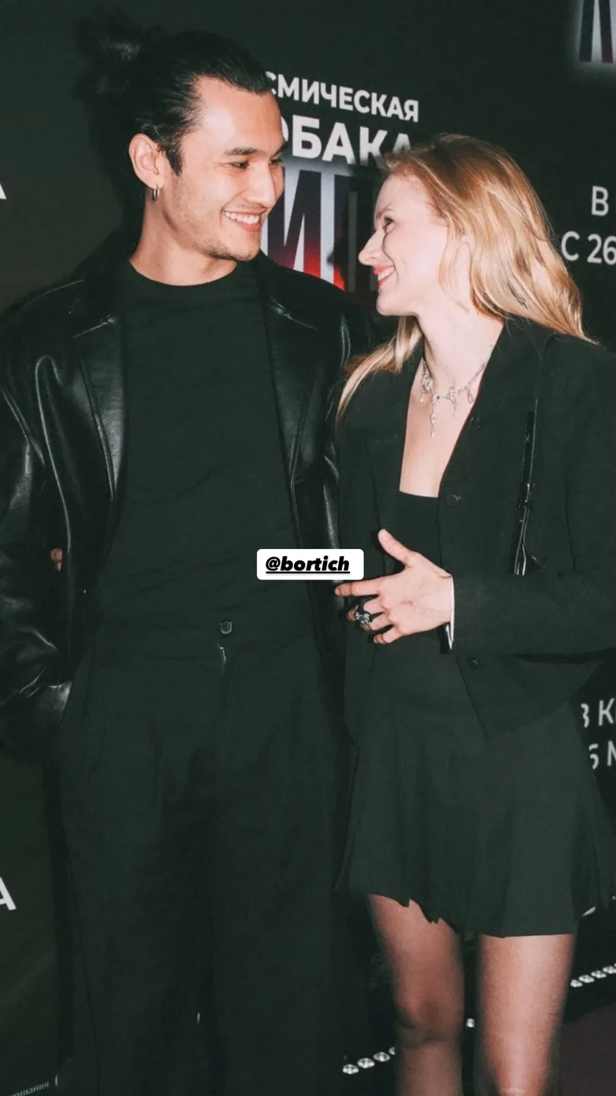 Бывшая жена Гарика Харламова Кристина Асмус пришла на премьеру в белой футболке, чёрных брюках и длинном тренче. 31-летняя Саша Бортич, которая снялась в фильме, надела мини-юбку с жакетом и позировала рядом с 28-летним бойфрендом. Юлия Пересильд тоже сыграла в ленте одну из ролей и вышла на дорожку в наряде total black.