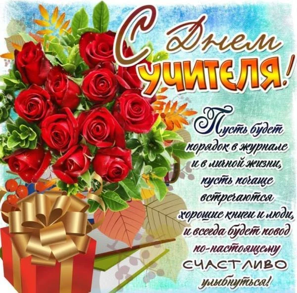 Учитель – это одна из самых добрых профессий в мире. В честь праздника хочется выразить вам огромную благодарность за терпение, за опору в трудных ситуациях, за умение все наладить, а, иногда, простить самые неприятные погрешности. Желаем вам хорошего настроения, времени для себя и своей семьи, больше приятных новостей и сюрпризов, чтоб вы никогда ни в ком и ни в чем не разочаровывались.