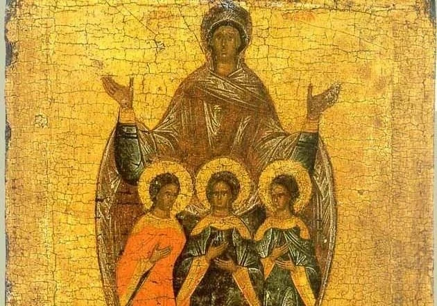 Согласно преданию, святая София жила в Риме во времена императора Адриана. Она была матерью трех дочерей, которых назвала по именам добродетелей — Веры, Надежды и Любови. Когда слух о их религиозной вере достиг императора, он стал угрожать им пытками, требуя отречения от веры. Как объясняет Ильяшенко, в такой ситуации обычный человек мог бы поддаться инстинкту самосохранения и отречься от Бога. Однако эти малолетние девочки, несмотря на угрожающее обстоятельство, проявили невероятную стойкость и отказались отречься. Все три, вместе с их матерью, были казнены за свою веру и непорочность. Эта история символизирует не только силу духа, но и преданность высшим идеалам.