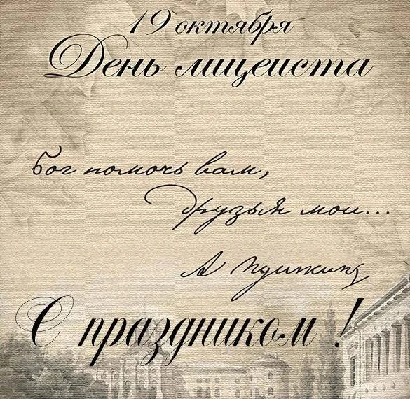 Поздравляю с Днём лицеиста. От души желаю веселых и счастливых дней в стенах лицея, больших достижений и невероятных успехов, удачи и великого стремления к своим целям, отличного настроения и оптимизма души, замечательных друзей и весёлых затей.